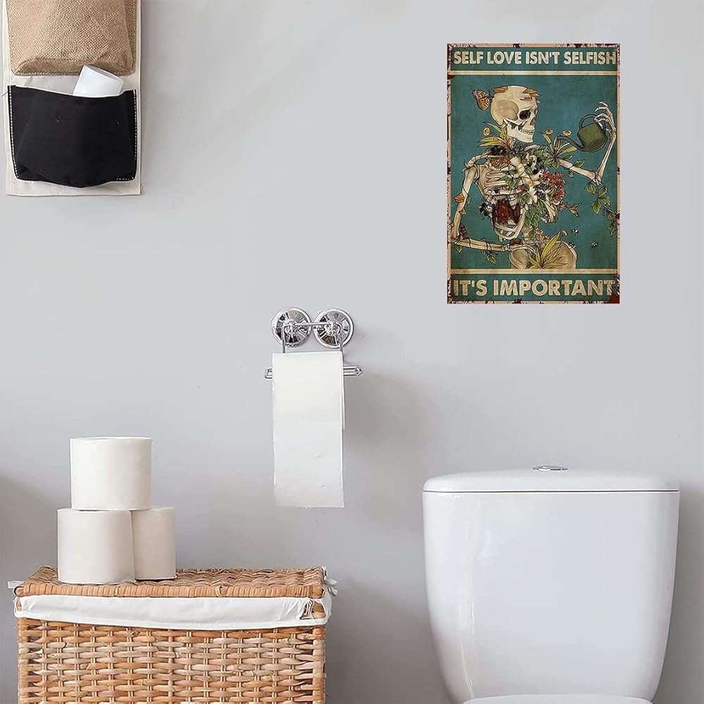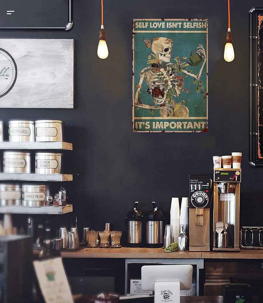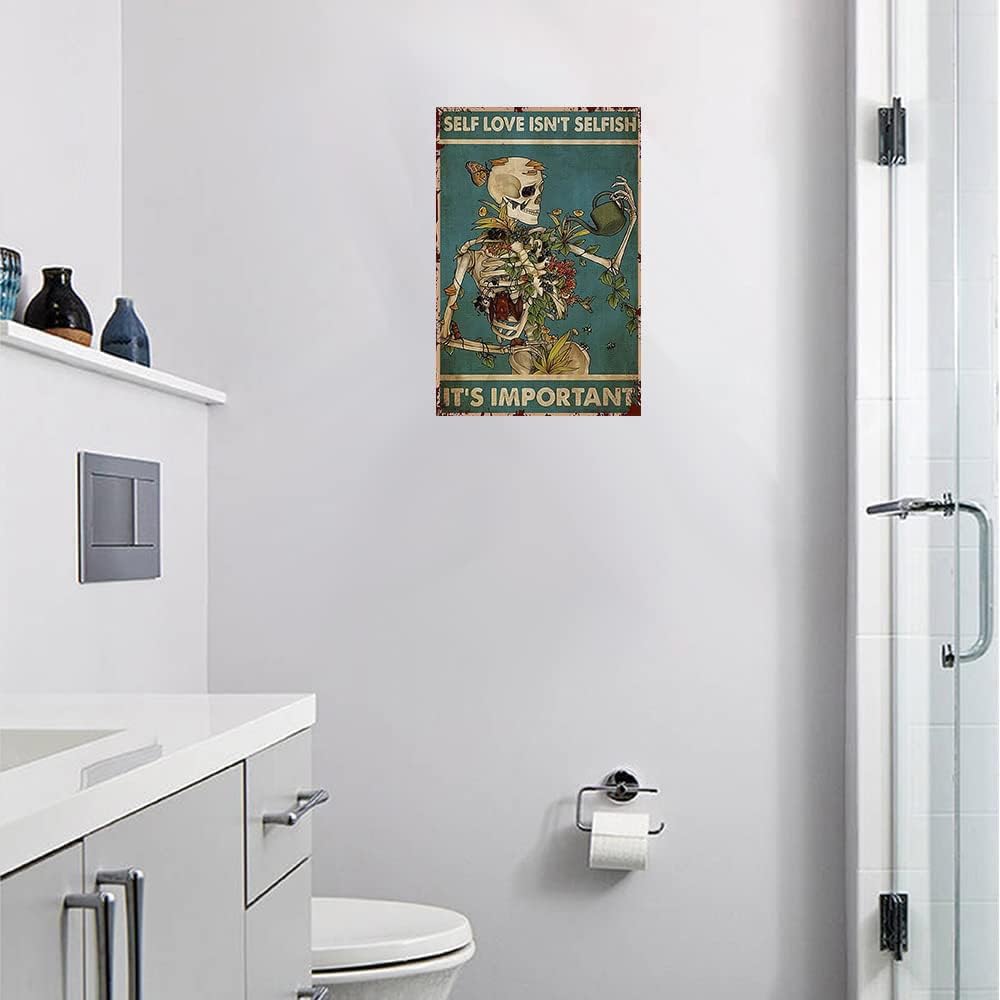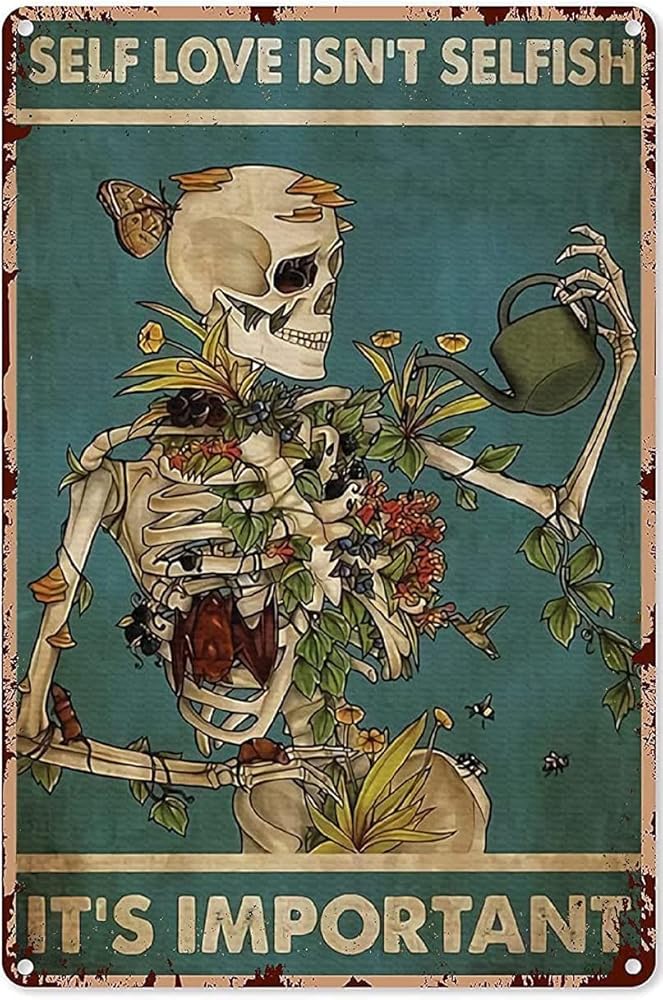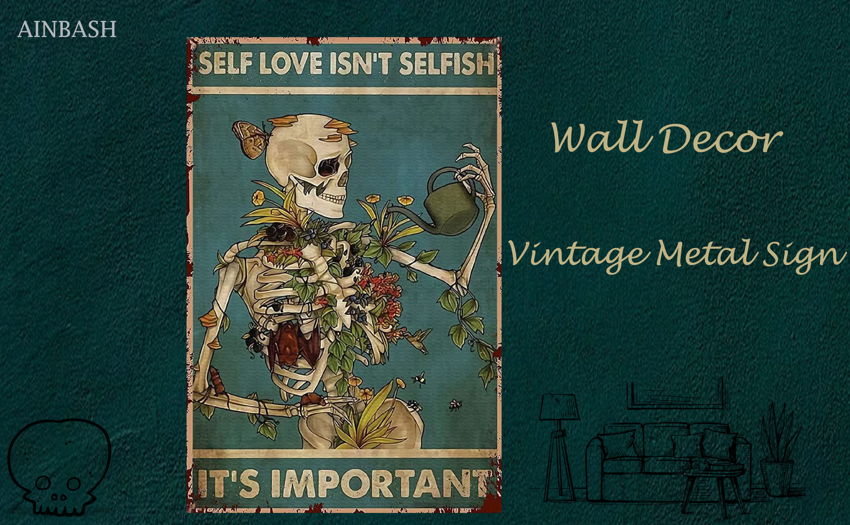 الرجعية القصدير تسجيل المنزل المعادن الصحة العقلية المسائل ملصق الهياكل العظمية الحب الذاتي ليس أنانية إنه ملصق مهم الوشم الجمجمة الألومنيوم جدار الفن ديكور العام 8x12 بوصة
