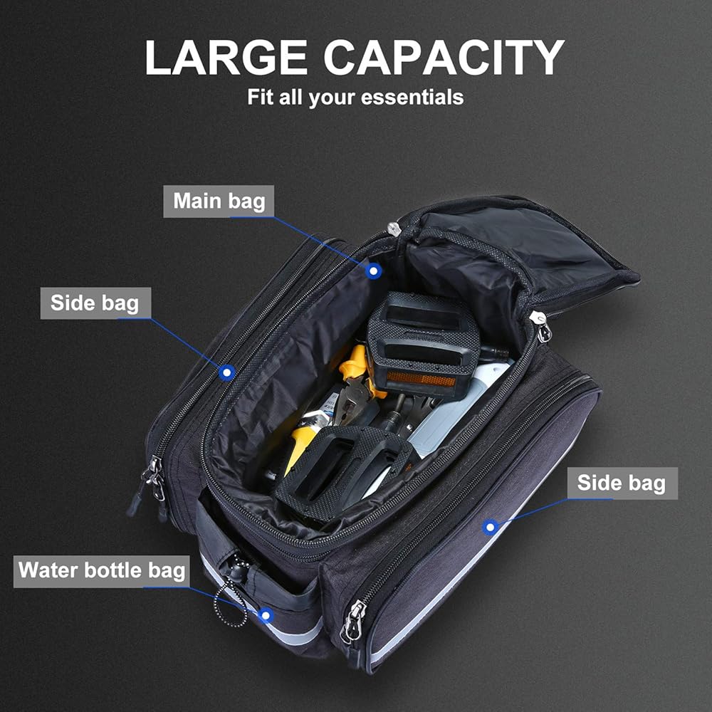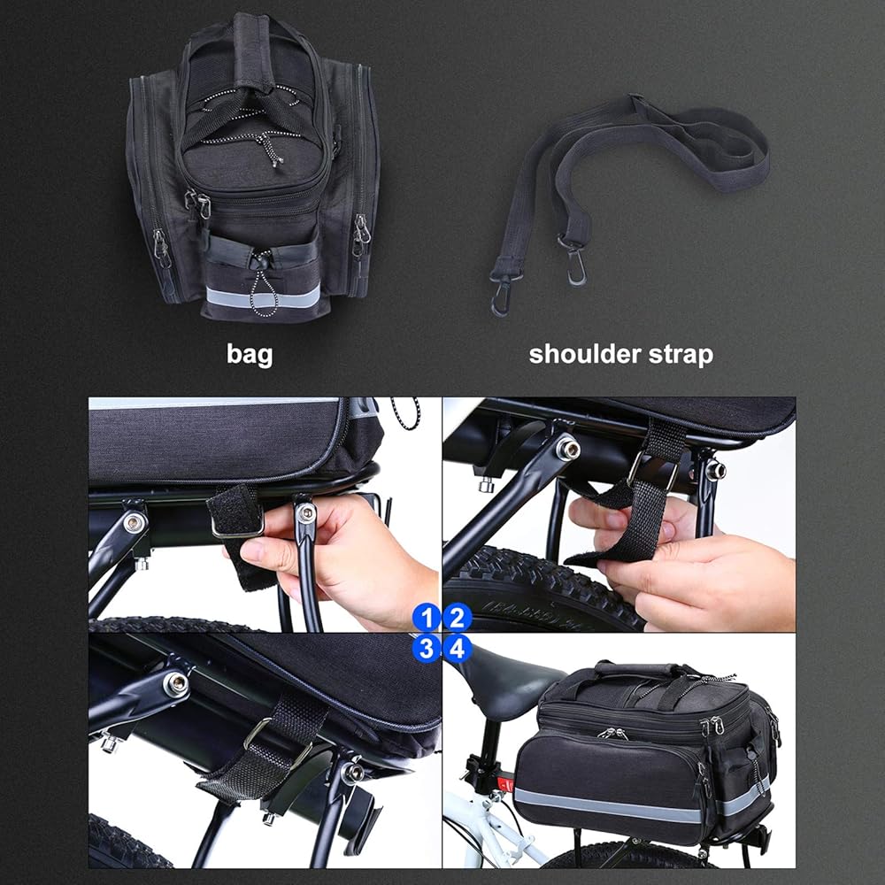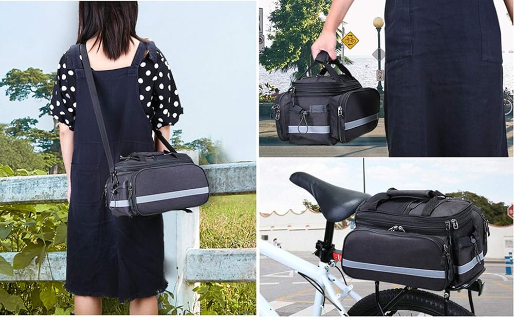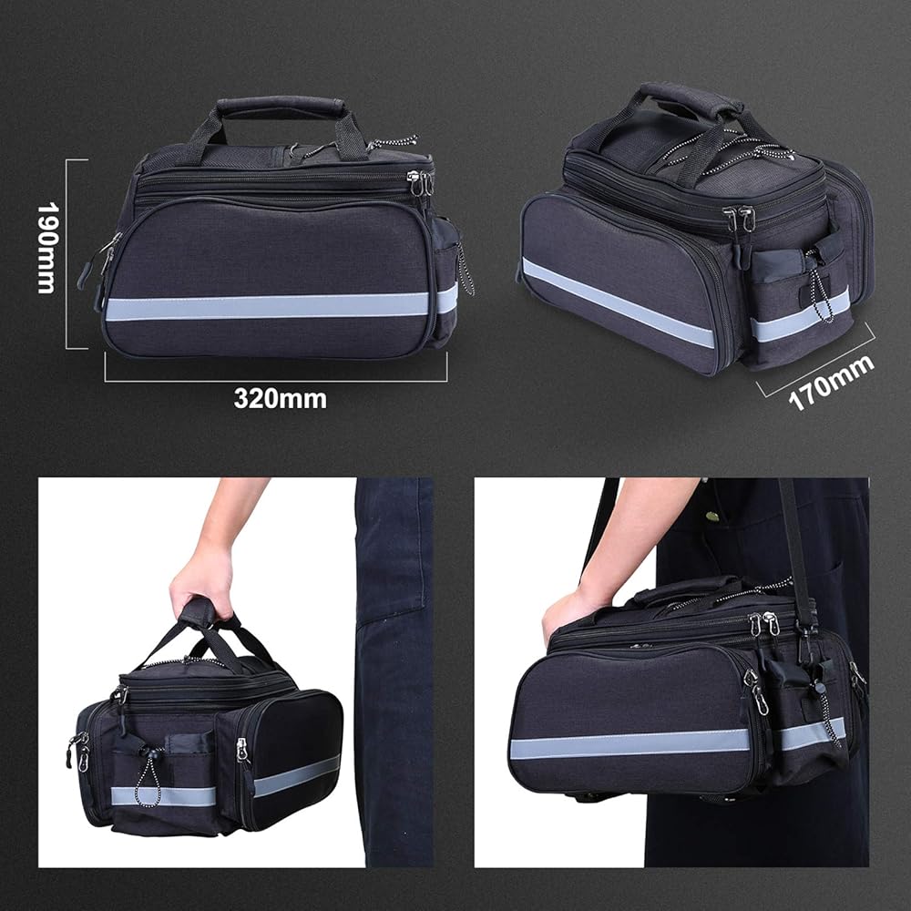 Multiple Carrying Methods----- With a shoulder strap of 70-130cm, this bike bag can not only be attached to the rear seat of the bike, but also can be carried by hand or shoulder.