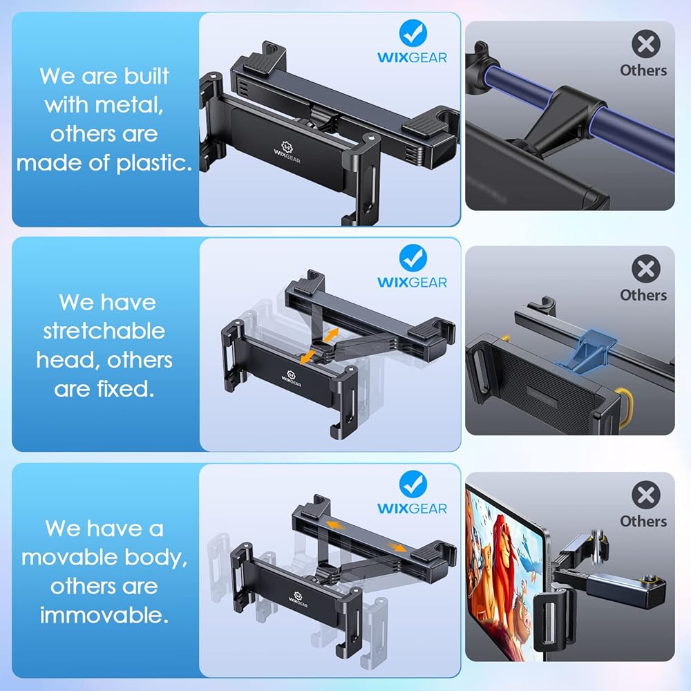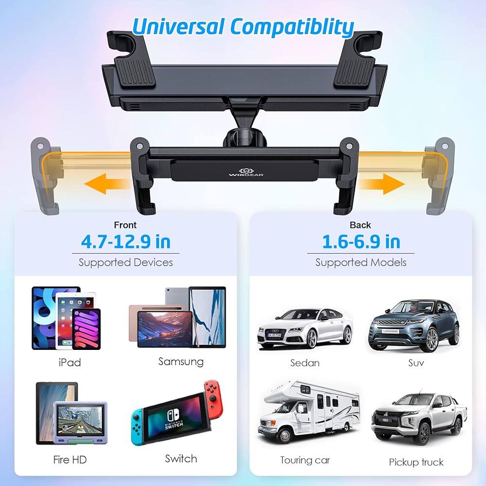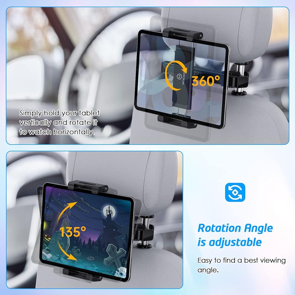 حامل الكمبيوتر اللوحي بمسند الرأس من WixGear، حامل الكمبيوتر اللوحي لمسند الرأس للأطفال، حامل الكمبيوتر اللوحي للسيارة متوافق مع جميع أحجام الطاولات من 4.7 بوصة إلى 12.9 بوصة والأجهزة الأخرى [تصميم جديد مطور لعام 2023]