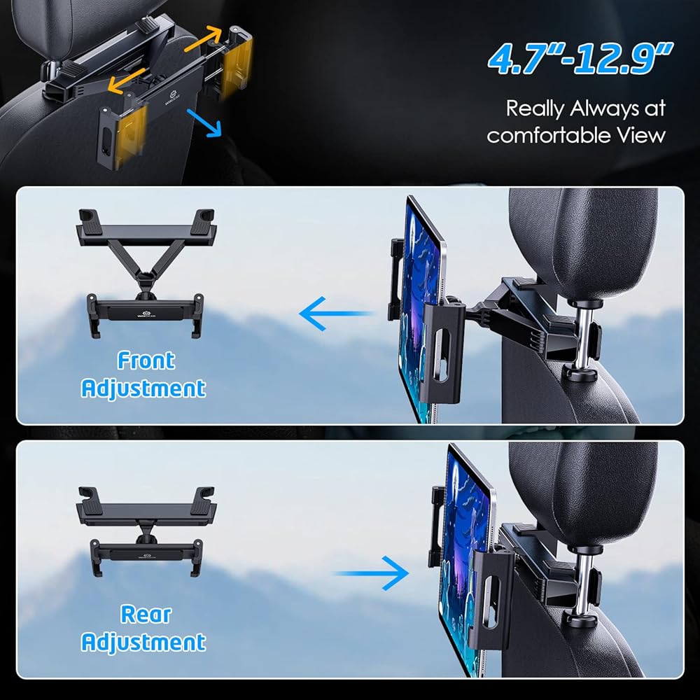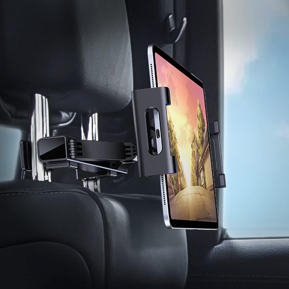 حامل الكمبيوتر اللوحي القوي: يضمن حامل الكمبيوتر اللوحي بمسند الرأس هذا الثبات، ولن يهتز حتى على الطرق الوعرة ليمنحك أفضل تجربة مشاهدة. يعد المقعد الخلفي لحامل السيارة لجهاز iPad مثاليًا للرحلات الطويلة.