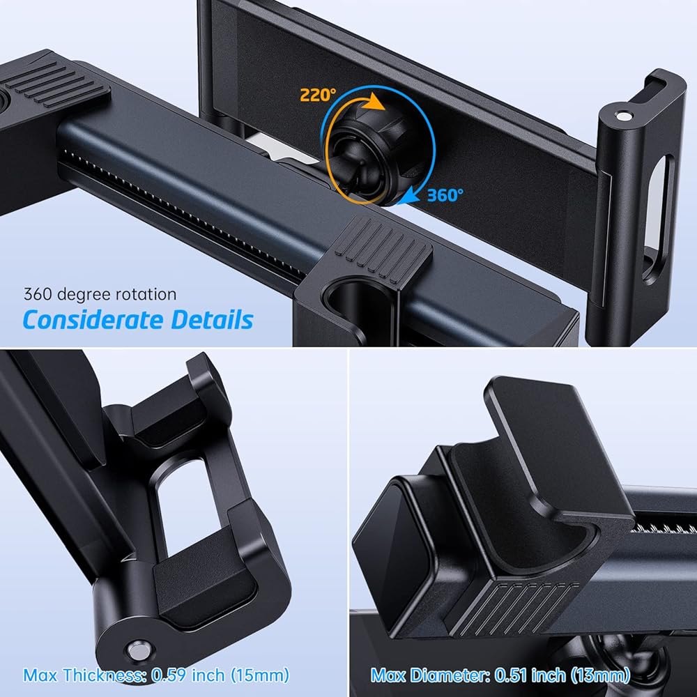 قابل للدوران والتعديل: يمكن تدوير حامل iPad للسيارة هذا بزاوية 360 درجة لتحقيق زاوية الرؤية المثالية وله هيكل مثلث يمكن تمديده من الخلف إلى الأمام بما يصل إلى 4 بوصات.