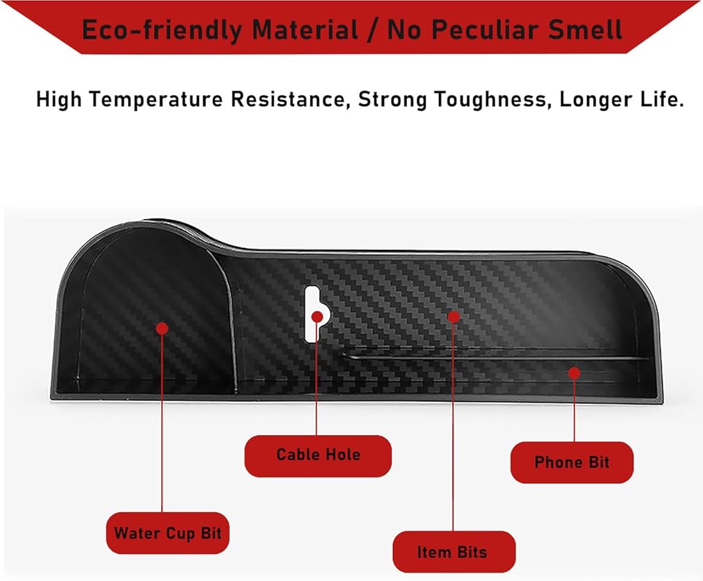 【High-quality Car Seat Gap Filler】 -- The car seat gap filler storage box is made of high-quality ABS plastic that cannot break, slip, bend or leave any scratches. With a velvet material pads that can prevent items from sliding and rattling. This car seat storage organizer front seat storage box is made of environmentally friendly materials, the overall odorless, using excellent raw materials, high temperature resistance, toughness, longer life.