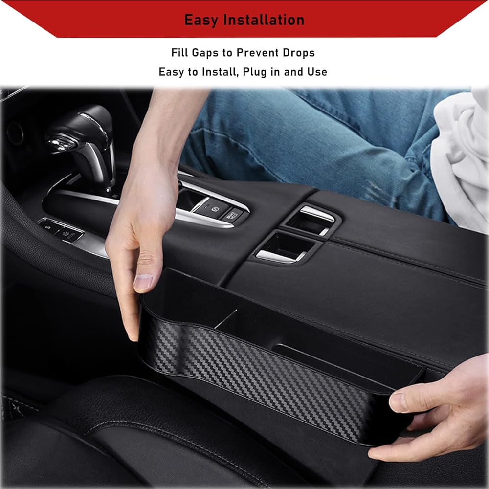 【Expand the Space】 -- Seat gap storage box will not make the car clutter, it allows us to take and put at hand, help us fill the car with gaps, so that the car is neat and tidy at the same time, do not waste the space in the car, so that the car double expansion, enhance the well-being of our interior space storage.
