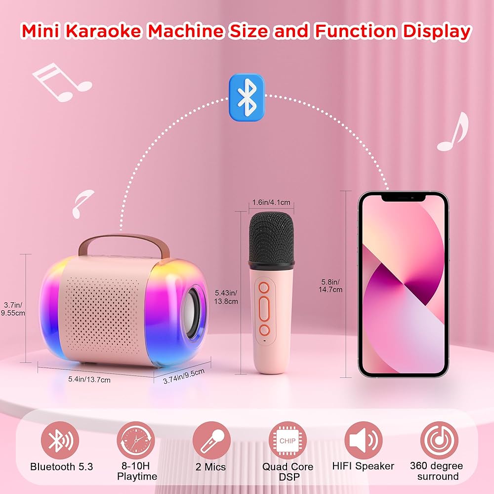 ♫【هدية مفاجئة للجميع】التصميم العصري والتعبئة الرائعة يجعلان من آلة الكاريوكي هدية مثالية للفتيات والأولاد والمراهقين. إنها هدية مثالية لأعياد الميلاد أو العطلات للفتيات والأطفال الصغار والمراهقين والبالغين الذين تتراوح أعمارهم بين 4 و5 و6 و7 و8 و9 و10 و11 و12 عامًا فما فوق. إنه الخيار الأفضل للهدايا لمختلف العطلات (عيد الفصح، الكريسماس، عيد الحب، الهالوين، عيد الشكر، رأس السنة الجديدة).