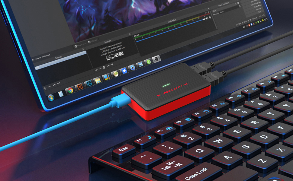 【مرور HDMI بدون زمن الاستجابة】قم بتسجيل الصوت والفيديو من الأجهزة الخارجية عبر منفذ HDMI. لا يوجد زمن انتقال عند إجراء بث مباشر للعبة.