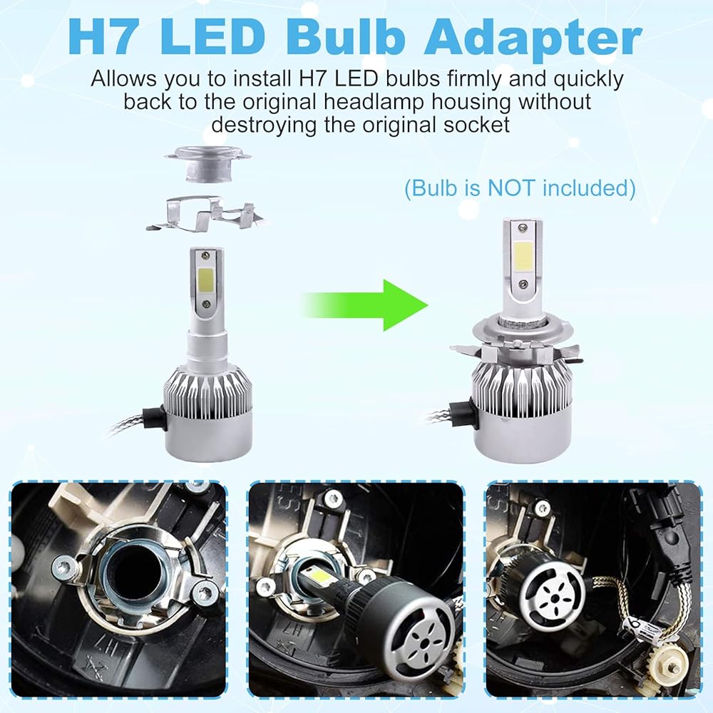 جودة عالية - محولات لمبة H7 LED مصنوعة من الفولاذ المقاوم للصدأ عالي الجودة، ومتين وقوي، ومقاوم للتآكل، ويدوم لفترة طويلة في الاستخدام.