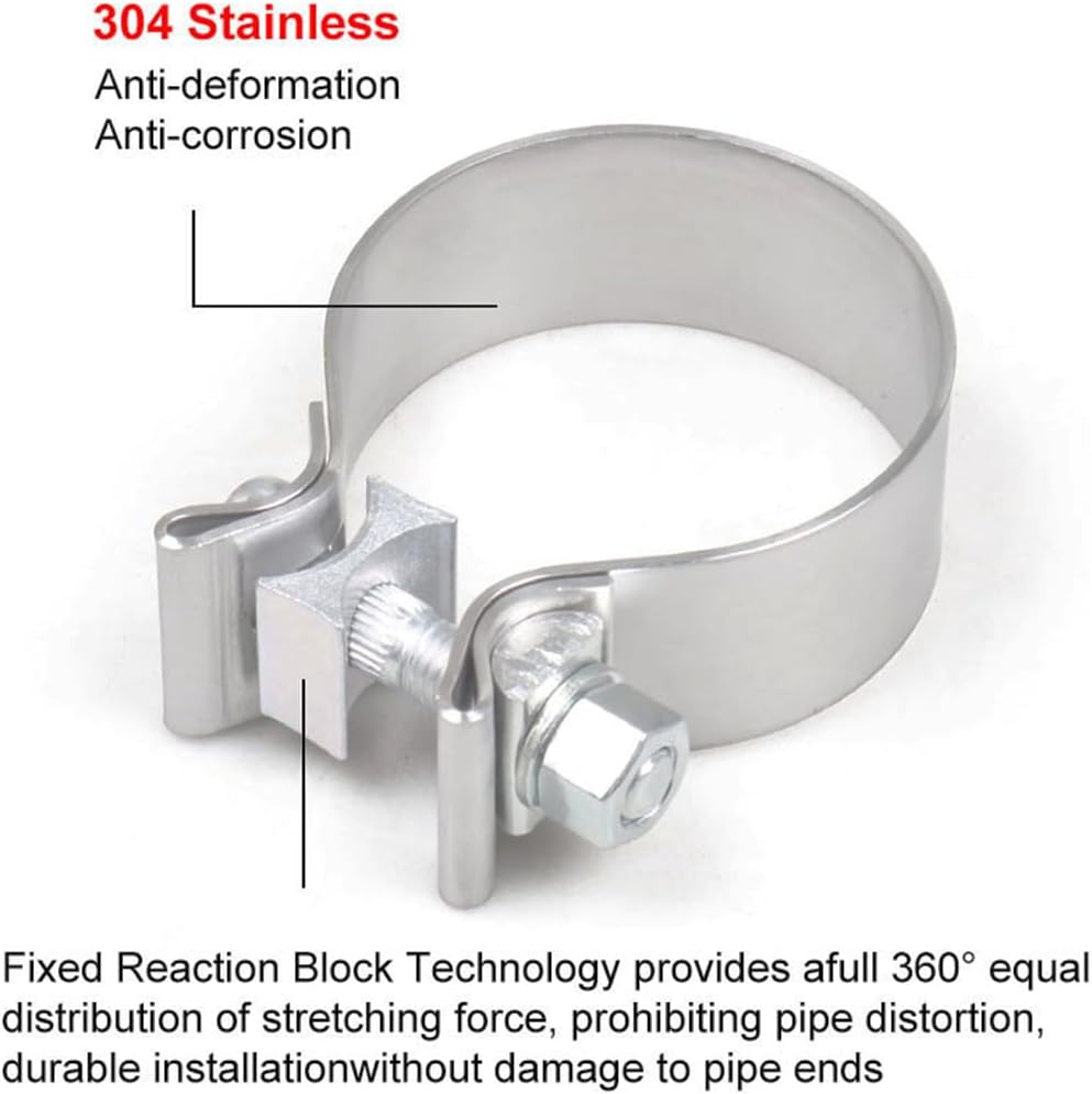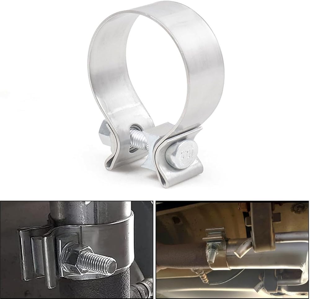 🚙【Easy to remove and install】The 2.5 exhaust band seal clamp chose the design of a flexible bolt and nut structure, which can easily be disassembled and installed. This exhaust clamp is adjustable, has been tested for strength, and is reusable without damaging the pipes.