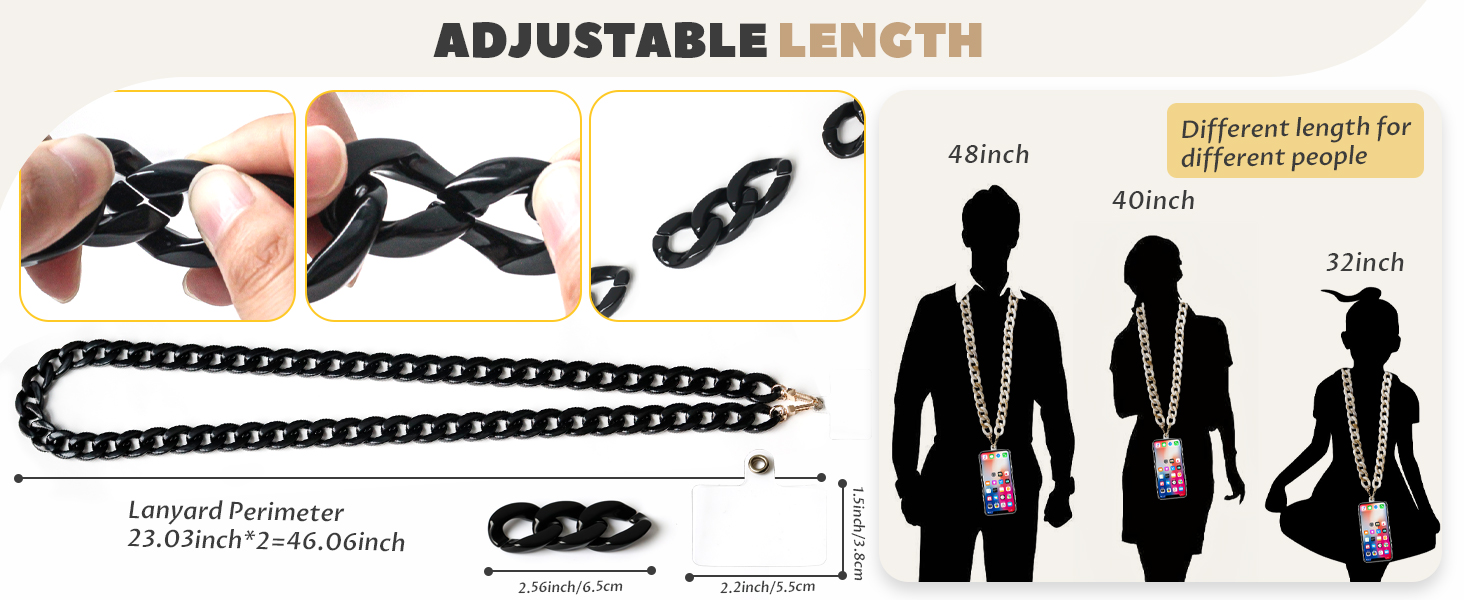 【حبل هاتف يستخدم على نطاق واسع】يمكن تطبيق سلسلة الهاتف العالمية لربطها بجميع الهواتف الذكية. فهو يمنح هاتفك مظهرًا أنيقًا وعصريًا ولا يحجب أي منافذ أو أزرار. يمكن تعليق حبل الهاتف هذا حول الرقبة أو الكتف، ويبقي يديك حرتين في جميع الأوقات. يرجى ملاحظة أنه غير متوافق مع حافظات الهاتف نصف التغطية.