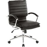Strap in for a comfortable chair constructed in thick contoured faux leather. Adjustable tilt tension and locking tilt control puts you in charge of this chair's functionalities. Built-in lumbar support and one-touch pneumatic height adjustment assures relaxing support during heavy work sessions. Beautiful chrome finishes set the presentation for the Armless Manager's Faux Leather Chair from Office Star. Incorporated in 1987, Office Star Products has become a leader in commercial office and residential furniture. Office Star Products - Furniture for Your World.