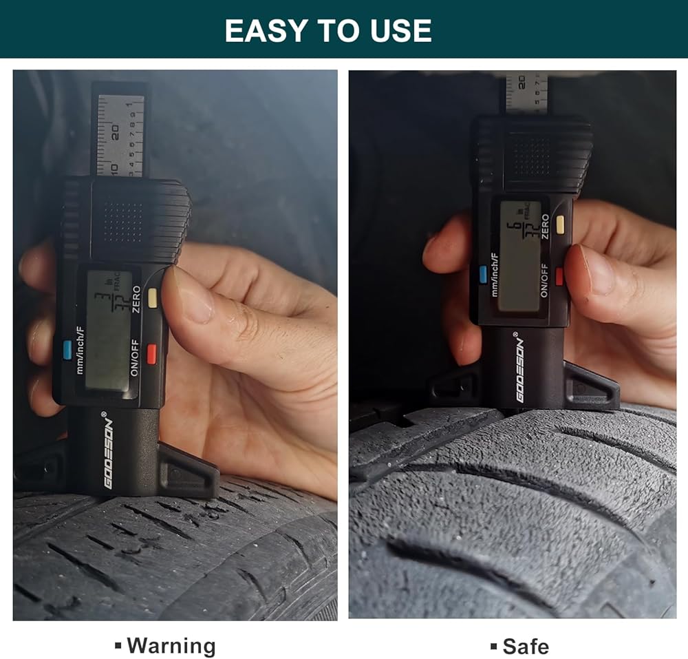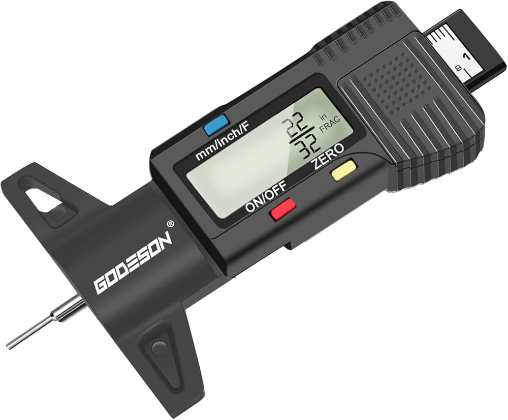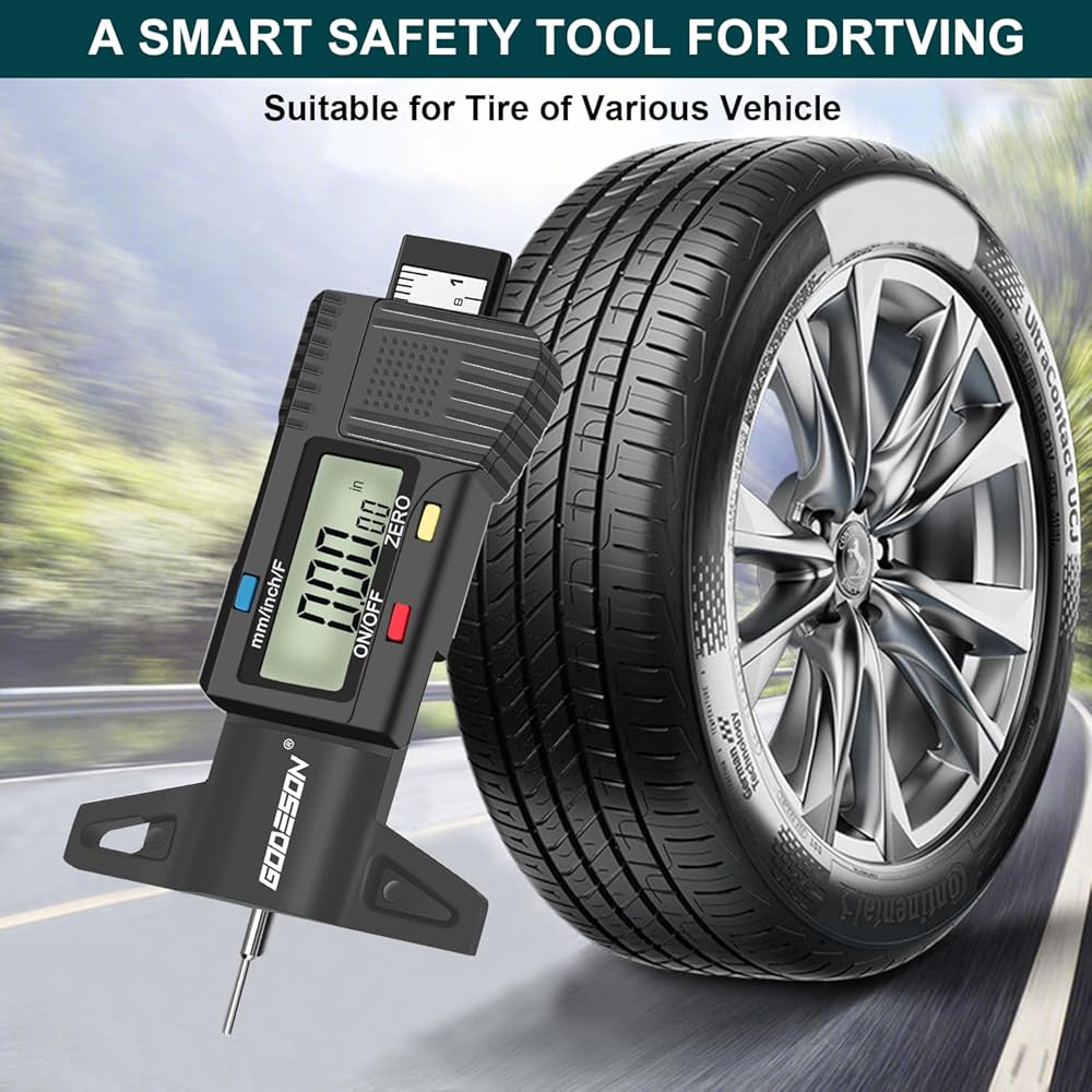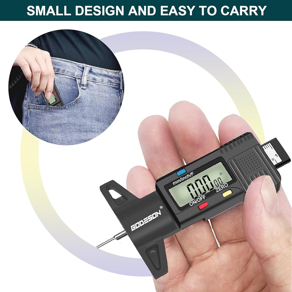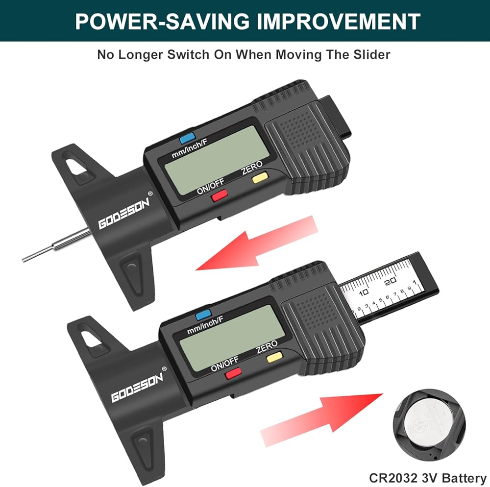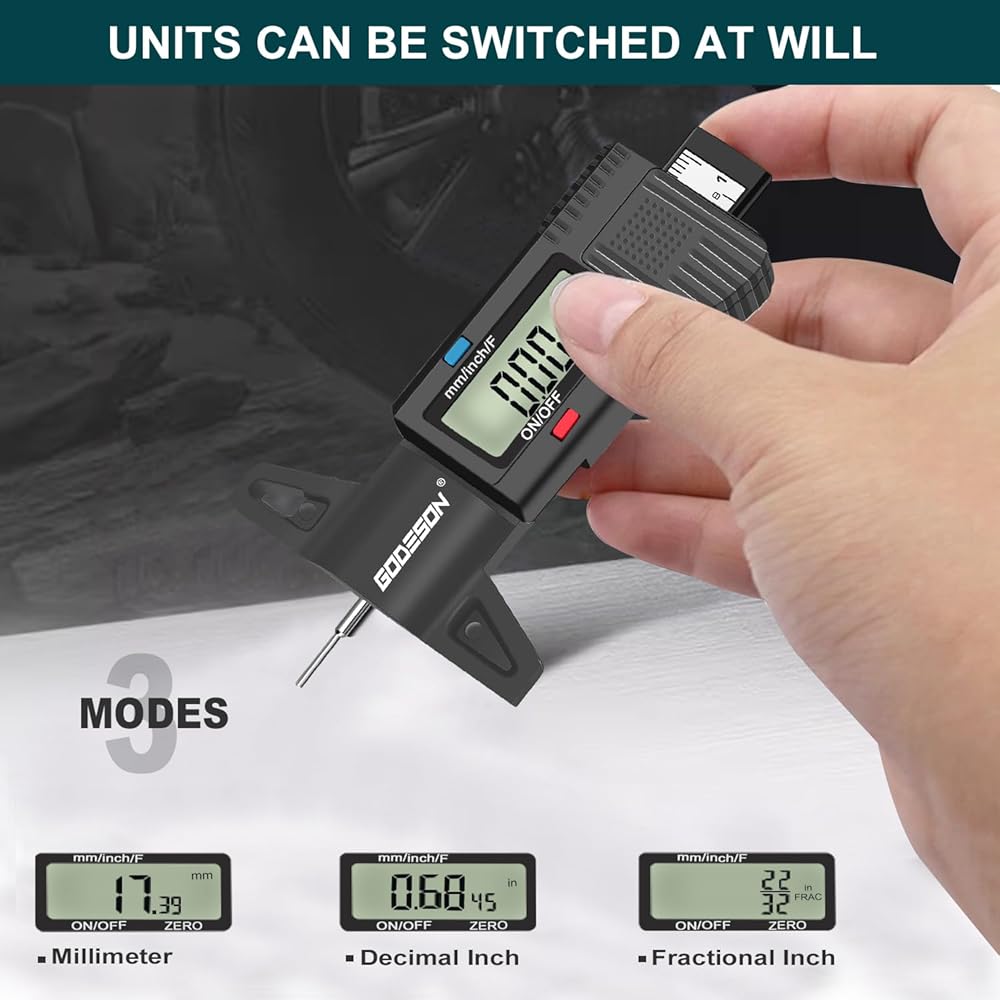 مقياس عمق مداس الإطارات الرقمي من جوديسون، مقياس عمق مداس الإطارات مع 3 أوضاع-بوصة كسرية، بوصة عشرية ومليمتر، مقياس مداس دقيق للإطارات، مقياس عمق الإطارات للدراجات النارية والسيارات والشاحنات والشاحنات وسيارات الدفع الرباعي