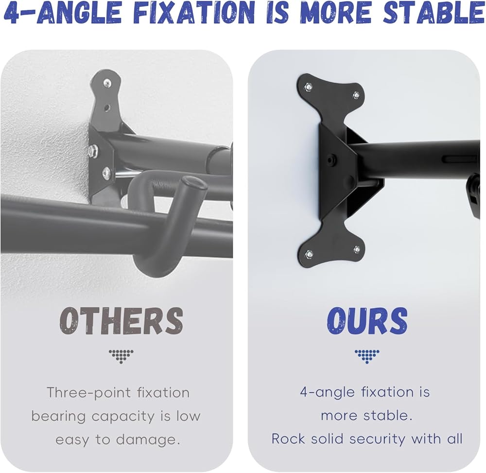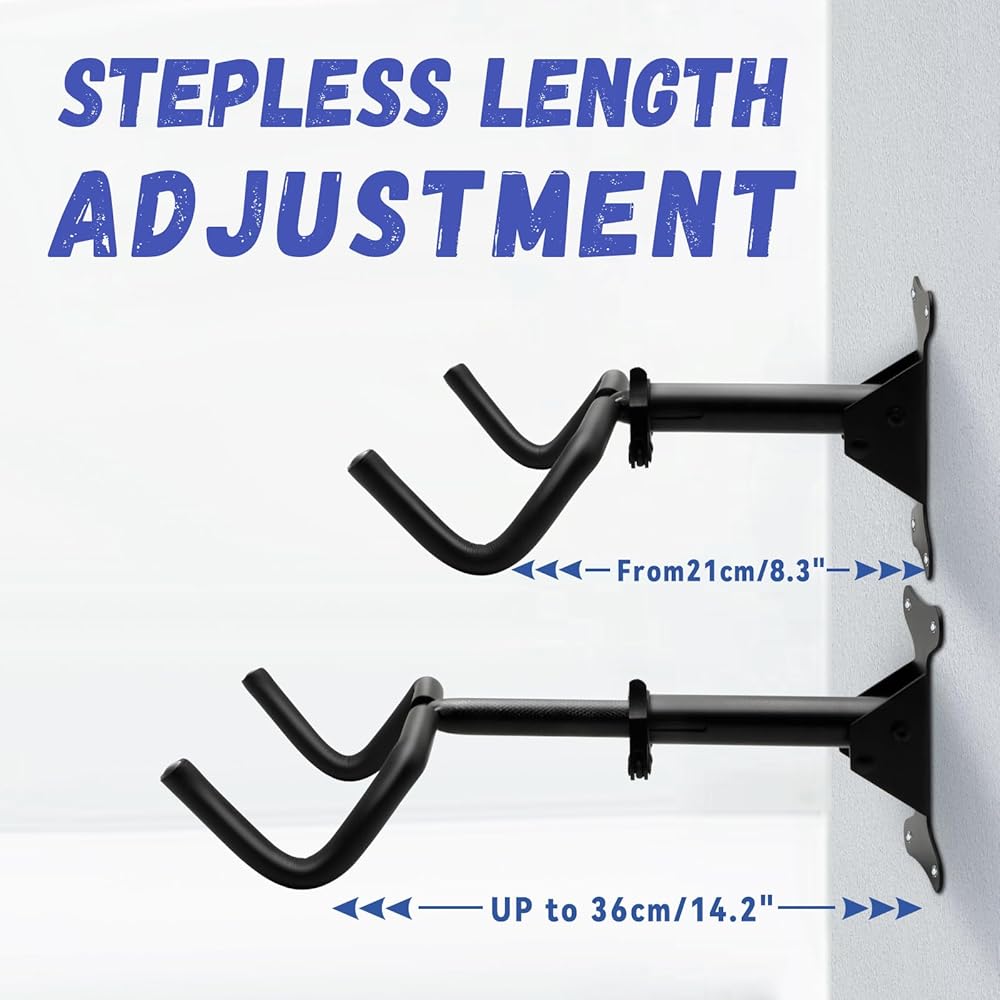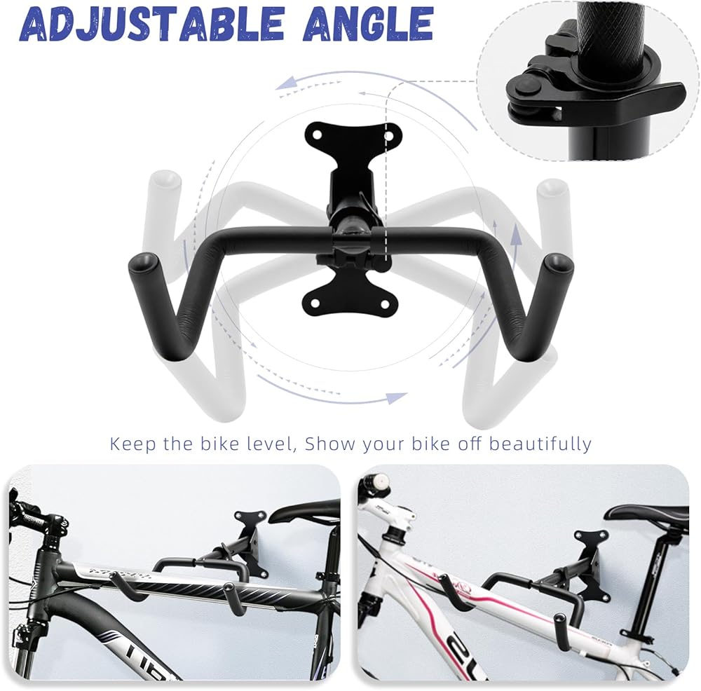 هيكل قوي ومتين: حوامل الحائط الخاصة بالدراجة مصنوعة من الفولاذ والجزء الذي يلامس الدراجة ملفوف بالإسفنج. سيتم تثبيت دراجتك في مكانها بشكل آمن، مما يوفر راحة البال والحماية من السقوط العرضي.