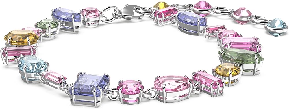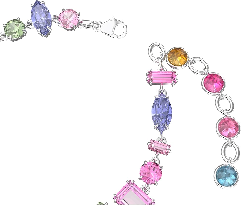 • عالم من العجائب في انتظارك: بيان بهيج ونابض بالحياة، يتميز هذا السوار بمجموعة مبهرة من الكريستالات ذات القطع الكلاسيكية المختلطة وظلال الباستيل، على شريط بلمسة نهائية من الروديوم.