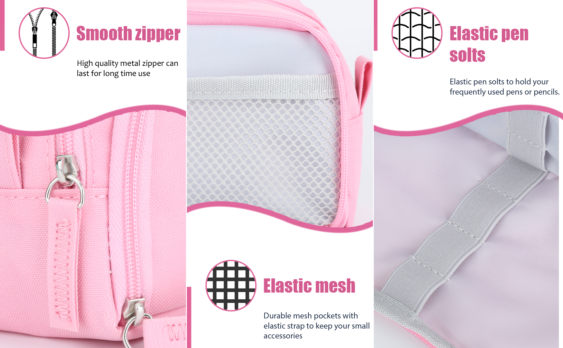 • مادة عملية: حقائب الأقلام الخاصة بنا مصنوعة من سحابات موثوقة ومواد متينة. إنها خفيفة الوزن، لذلك من السهل وضعها في حقيبة يدك.