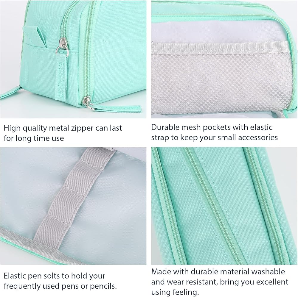 • هدية رائعة: يمكن لحقائب الأقلام الخاصة بنا أن تلبي بشكل أساسي استخدامك اليومي، وهي مثالية للسفر ورحلات العمل وصالة الألعاب الرياضية والتخييم والحمام والأنشطة الخارجية. كما أنها هدايا رائعة يمكن تقديمها في أيام مثل أعياد الميلاد، أو عيد الحب، أو عيد الأم، أو عيد الشكر، أو عيد الميلاد، أو فقط شاركها مع عائلتك وأصدقائك.