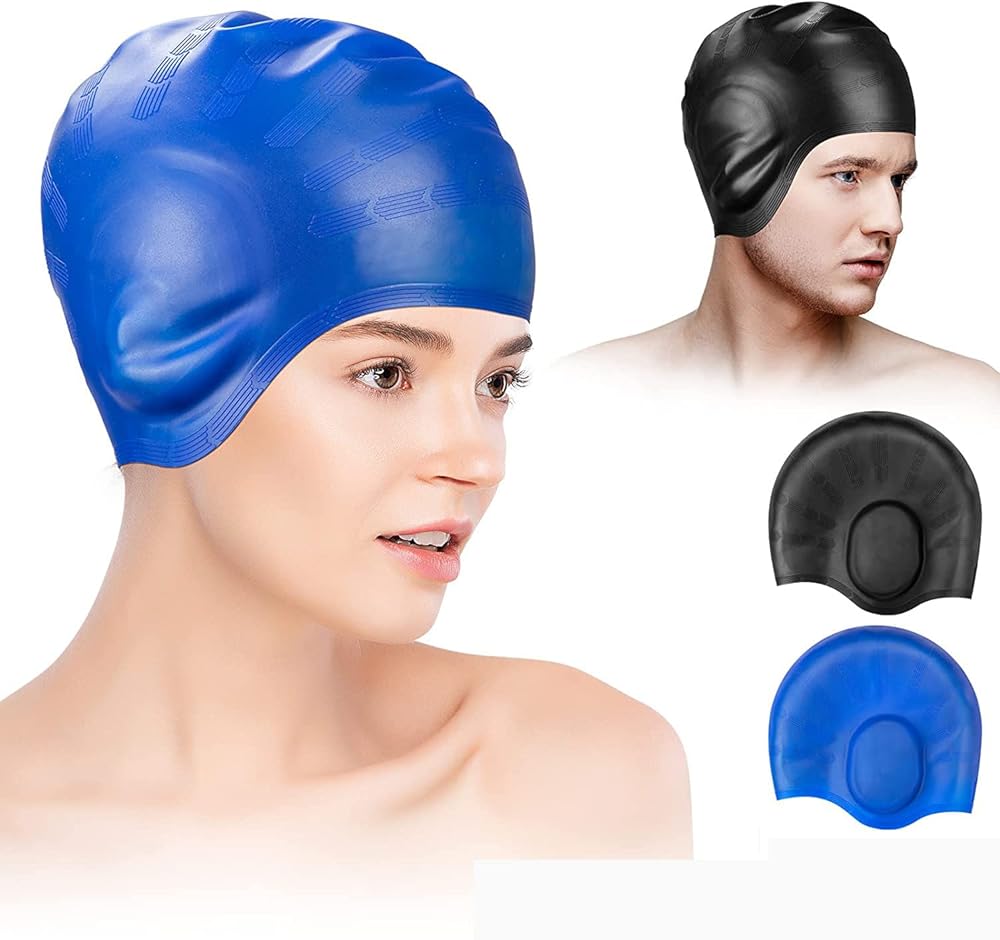 Swim Caps Cover Ears (2 Pack) Unisex Swim Caps Durable Flexible Silicone Swimming Hats for Women Men Kids Adults