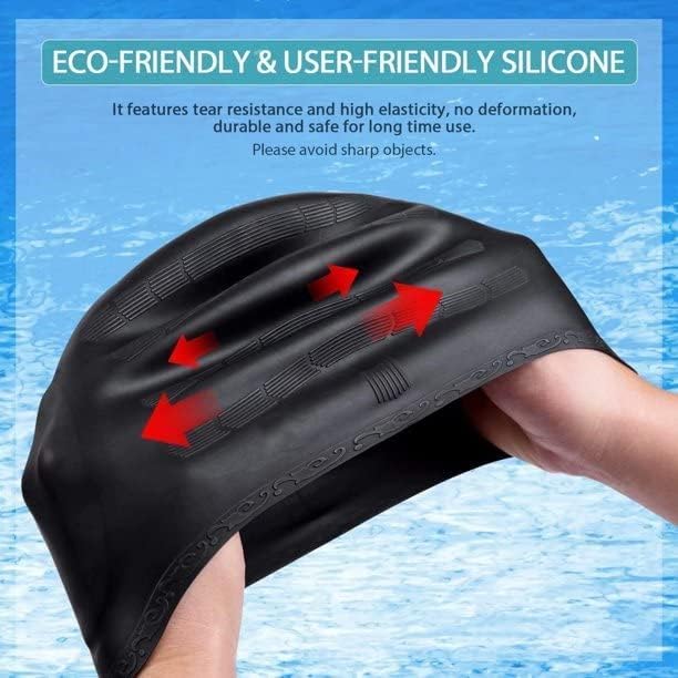 SWIM CAP FOR LONG HAIR: Specially designed for women with long hair, large enough for your long hair. And with superior elasticity, it can better fit your head size and protect your hair without getting wet or getting hurt.