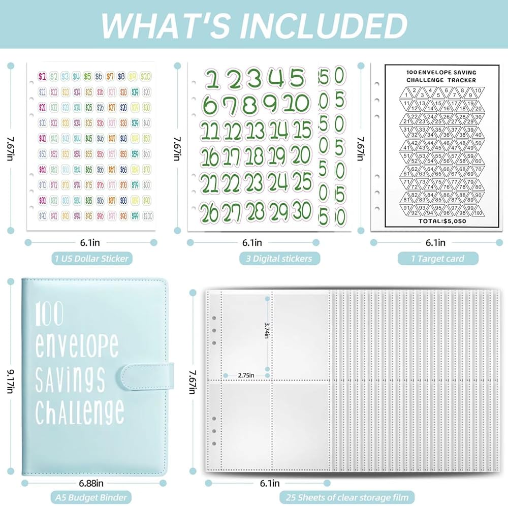 【100 Envelope Savings Challenge】100 Envelopes Money Saving Challenge Loose-leaf Binder is a great way to get the whole family involved in saving while developing good saving habits in your children. Imagine how fun and engaging it is to start with $1 on day one and save $5,050 on day 100!