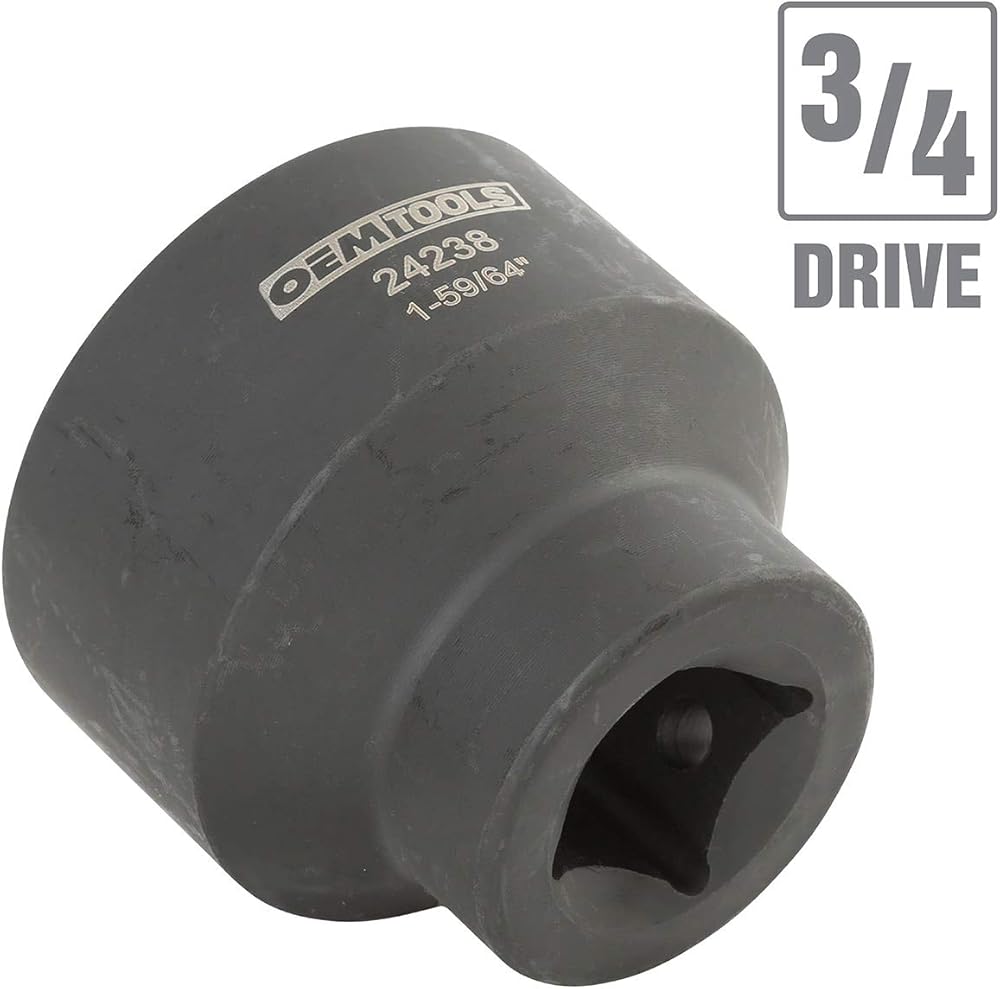 The OEMTOOLS 24215 2-9/64 Inch Ball Joint Impact Socket, 3/4 Drive is a ball joint remover tool for Chrysler and Dodge vans and trucks. If your truck or van is making squeaky noises, exhibiting shaky steering, or drifting to the side, your ball joint could be going bad. If the lower ball joint has gone bad, it is still important to check the upper ball joint, and even every front suspension ball joint, as signs of wear in one part can signal problems elsewhere. Because ball joints can last 70,000 miles or more, they can be rusted and difficult to budge. Using this special impact automotive tool as a part of your ball joint kit can make the process much easier for Chrysler and Dodge ball joints. Instead of wrestling to make a more generalized ball joint tool kit fit your specific vehicle, you can near-effortlessly use an impact wrench with this specially designed OEMTOOLS socket to remove or install ball joints. Having a solid ball joint removal tool kit and the know-how to use it can save you lots in repair costs, as a neglected ball joint problem can cause damage to other parts and even lead to vehicle failure. Add the OEM TOOLS steel ball joint impact socket to your automotive specialty tools if you need a Chrysler or Dodge ball joint tool in your ball joint service kit.