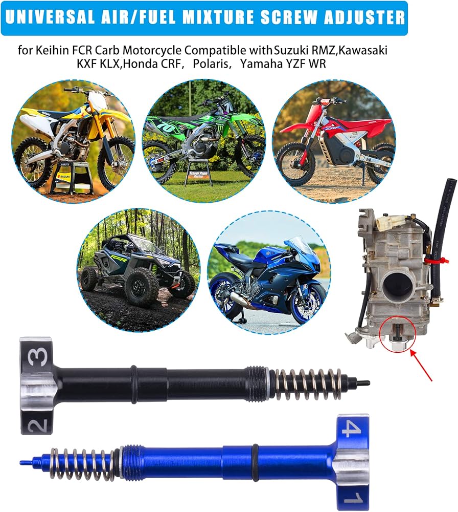 متوافق مع: يناسب معظم مكربنات Keihin FCR وFCR-MX، ويناسب معظم الموديلات ذات 4 أشواط (النماذج الملائمة المرجعية على النحو التالي). يأتي أداة ضبط برغي وقود الهواء fcr مع زنبرك وغسالة وحلقة على شكل O، ومن السهل تركيبها واستبدالها