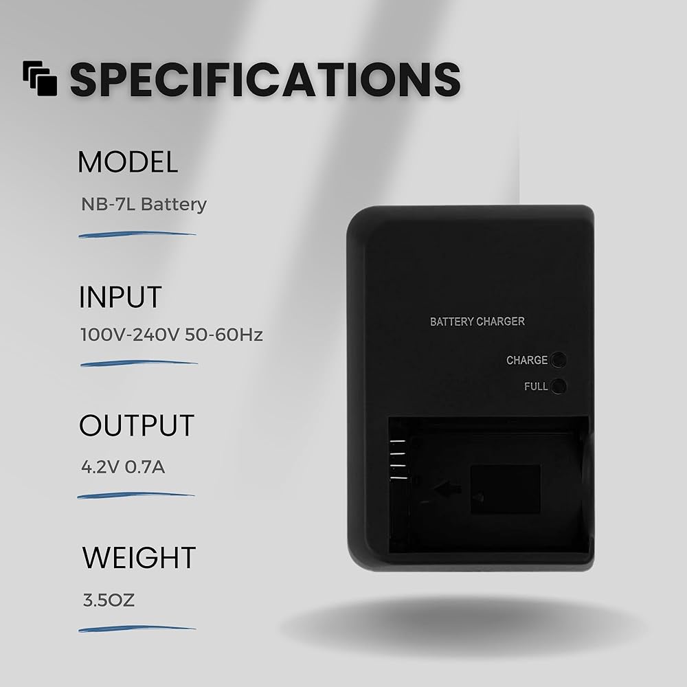 - Compatible Battery Model: NB-7L NB-7LH battery.