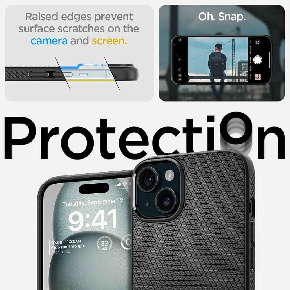 Spigen Liquid Air Armor مصمم لهاتف iPhone 15 (2023)، [حماية من الدرجة العسكرية] - أسود مطفي