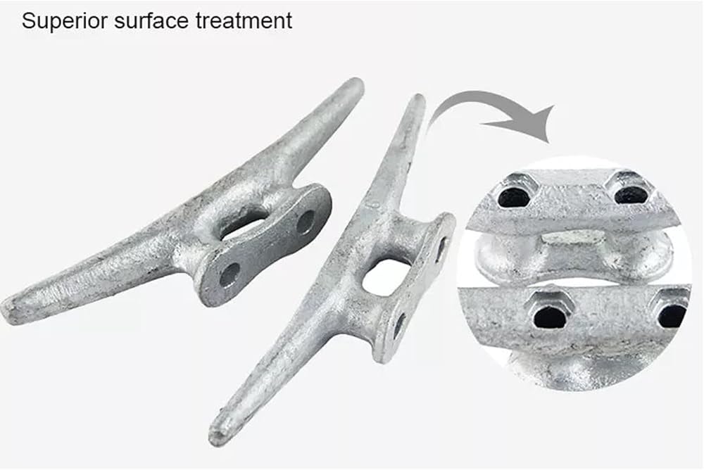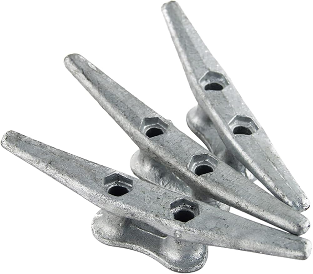 MADE OF GALVANIZED IRON - Rough cast iron metal dock cleats galvanized and hot dipped to hold up against weather conditions. Rust-free dock cleats, weatherproof, and corrosion-resistant.