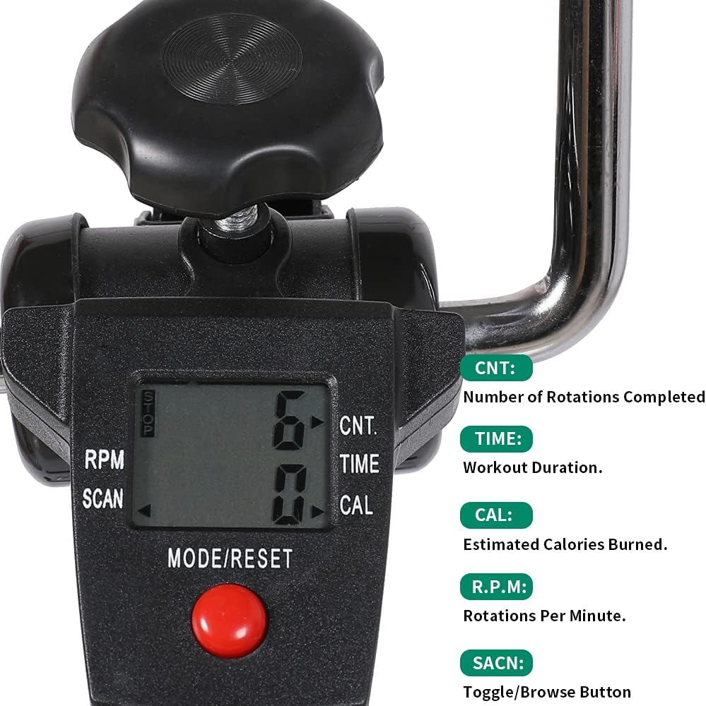 【شاشة LCD رقمية】 - مع شاشة LCD المدمجة، تسمح للمستخدمين بتتبع تقدم التمرين في أي وقت، تعرض الشاشة الإلكترونية وقت التمرين، وعدد الثورات، والثورات في الدقيقة (RPM)، والسعرات الحرارية المحروقة. يتم تبديل الشاشة سهلة القراءة تلقائيًا من خلال ميزة المسح الضوئي المتطورة