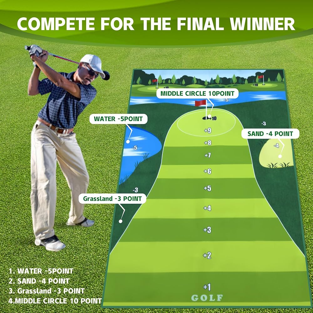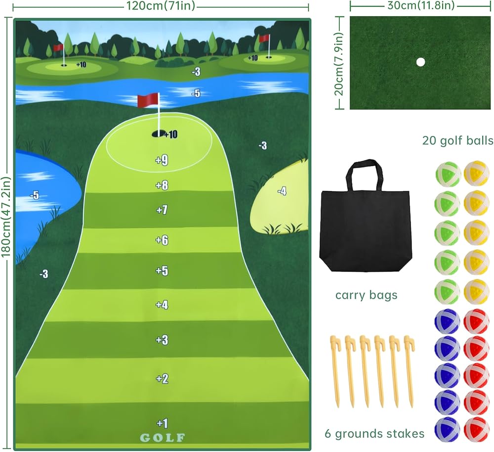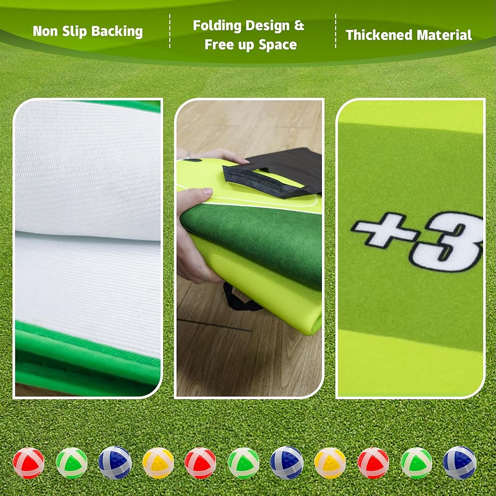 • [هدية مثالية للمهرجانات]: سجادة لعبة الجولف التقطيع صديقة للجميع، يمكن للأطفال والكبار الحصول على أعلى الدرجات من خلال سجادة اللعبة هذه، دع الجميع يستمتعون بتجربة اللعب المبهجة هذه، ويقربون العائلة من بعضهم البعض، ومثالية لأعياد الميلاد وعيد الأب وغيرها. العطل.