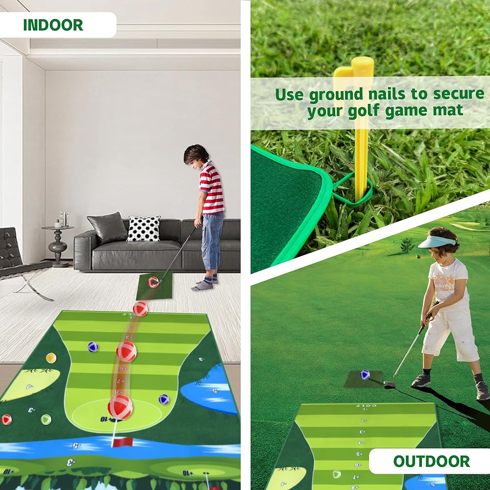 • [نطاق واسع من التطبيقات]: سجادات ألعاب الجولف مناسبة للأطفال والكبار والعائلات، وهي أكثر ملاءمة لسجادات الألعاب الداخلية والخارجية في الفناء الخلفي، مما يسمح لك بتجربة متعة الجولف في أي وقت وفي أي مكان، وتعزيز متعة الأطفال والتعلم. المعلومات المتعلقة بالجولف