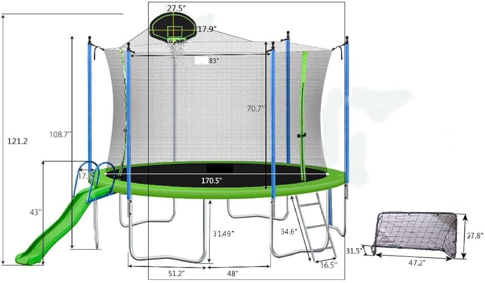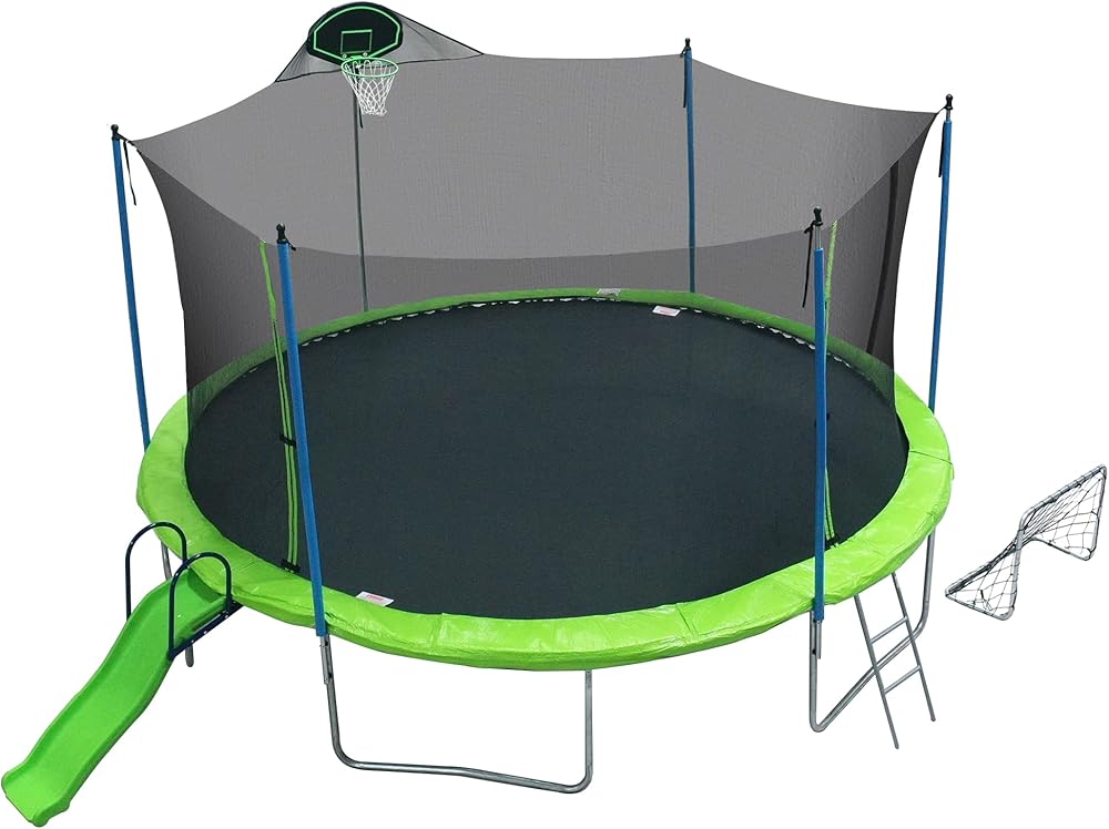 The 15 ft trampoline is equipped with 96 oversized 7" galvanized springs with strong stretch and rebound that can improve enough bounce.