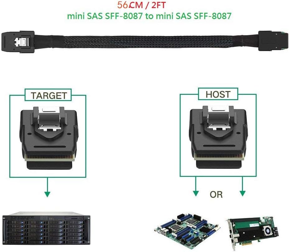 كابل داخلي من Mini SAS SFF-8087 إلى Mini SAS SFF-8087 Mini SAS، 1.8 قدم / 56 سم