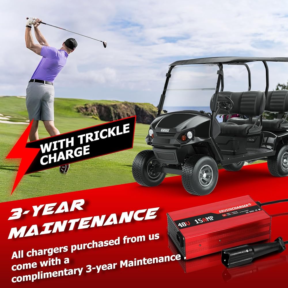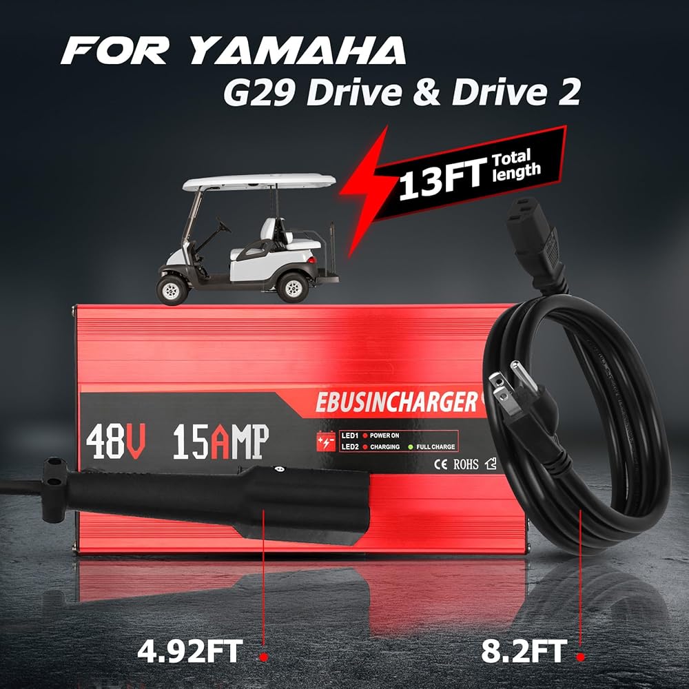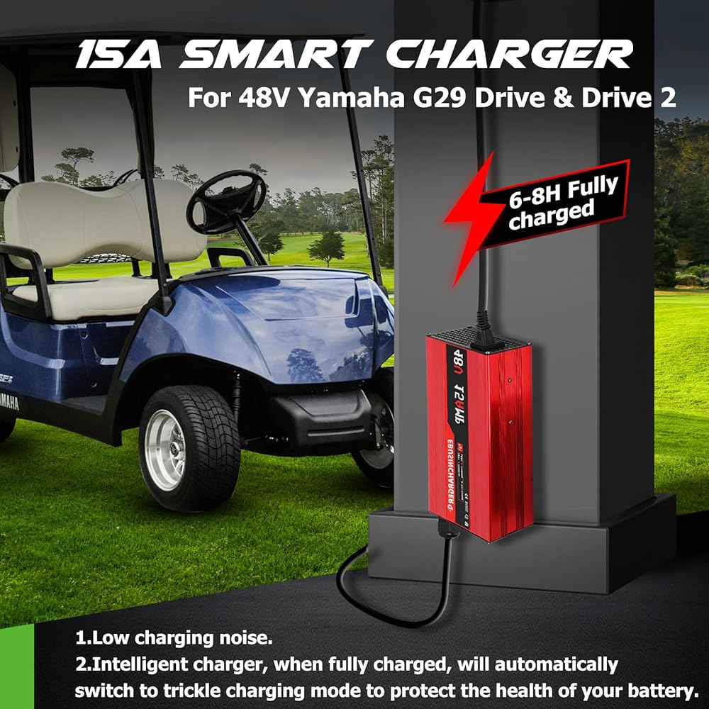 شاحن بطارية عربة جولف 48V15A مطور لياماها G29 Drive & Drive 2 عربات جولف. شاحن عربة جولف 48 فولت - قابس أوراق 3 سنون. شاحن ذكي 15 أمبير مع شحن قليل، شحن كامل 6-8 ساعات.
