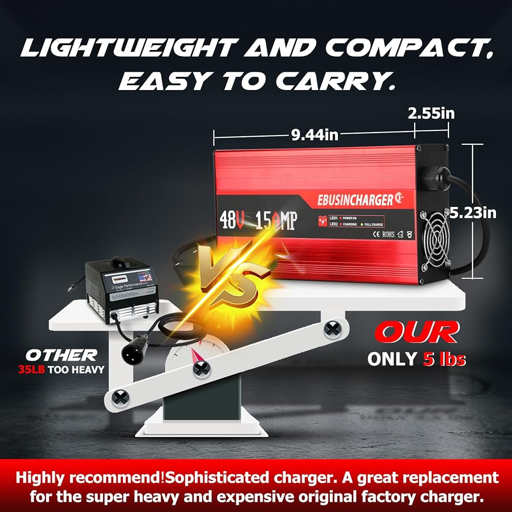 • ✅【جودة عالية】: شاحن عربة الجولف ياماها 48 فولت مع شهادة CE وRoHS هو المساعد المثالي لعربة الجولف الخاصة بك. وضع الشحن الذكي يمكن أن يجعل بطاريتك تتمتع بعمر أطول.