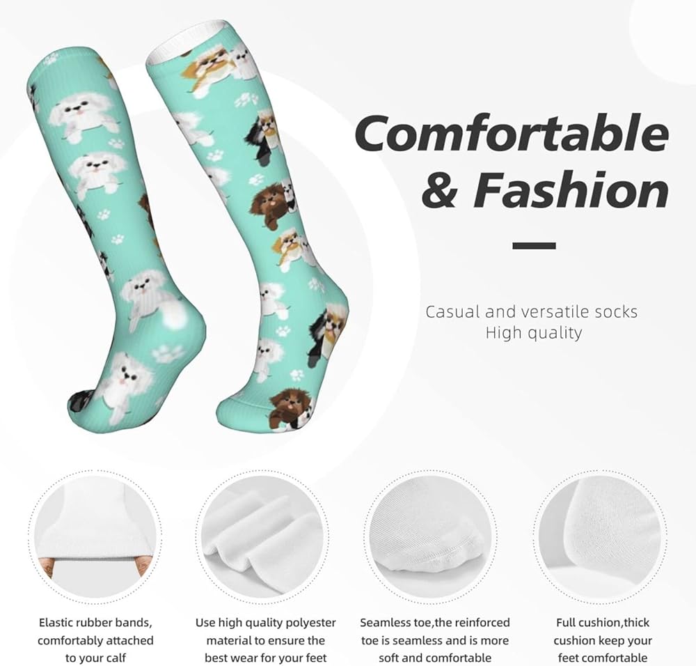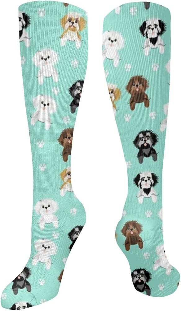 جوارب ضغط Shih Tzu Cute Shih Tsu Dogs Mint للنساء والرجال الدورة الدموية 15-20 مم زئبق هي أفضل دعم للجري الرياضي وركوب الدراجات، أبيض، مقاس واحد