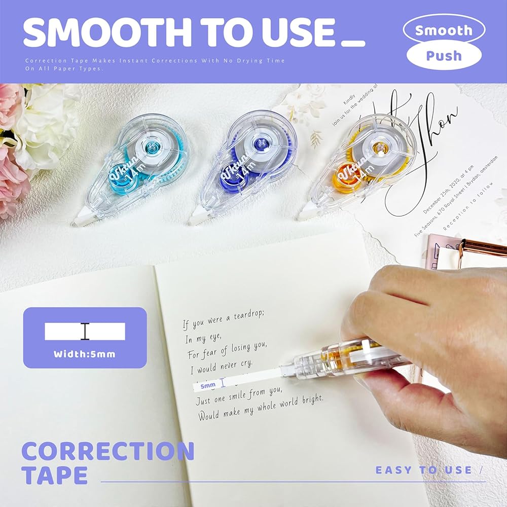 تصحيحات دقيقة: العرض المعدل هو 5 مم، وهو ما يتماشى مع معايير ورق الكتابة الحالية. دائما مغطاة بالكامل. مناسب لتصحيح أخطاء قلم النافورة وقلم الجل وقلم الحبر وأقلام الرصاص. مناسبة لليمين واليسار.
