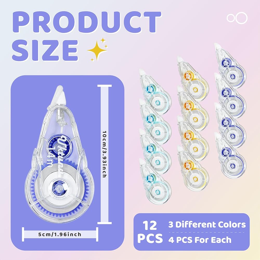 شريط تصحيح Whiteout عدد 12 أداة توزيع نظيفة وسهلة الاستخدام لإجراء تصحيحات فورية بطول 45.9 قدم لإدارة المكتب وتدوين الملاحظات وتدوين العلامات وصياغة سجل القصاصات