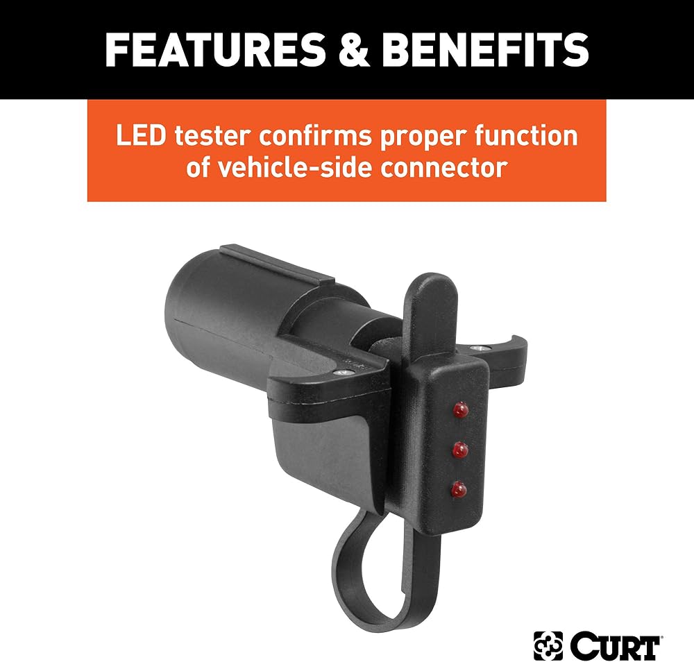 INTEGRATED TESTER. This trailer wiring adapter features a dust cover with a built-in LED wiring tester to ensure proper functionality of your vehicle towing electrical system. The dust cover also protects the 4-pin wiring socket