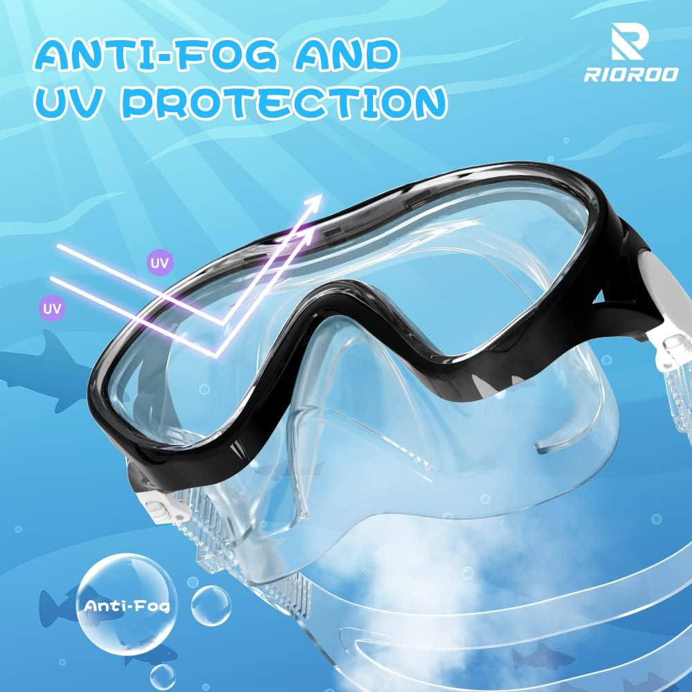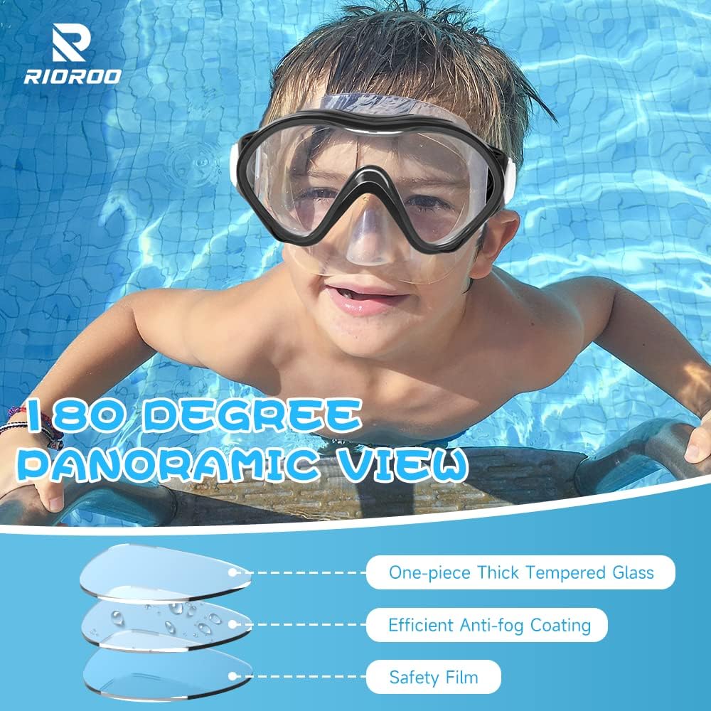 🐳【عدسة زجاجية مقواة للسلامة】سلامة الأطفال أولاً. تستخدم نظارات السباحة للأطفال من ريورو عدسات زجاجية مقواة معززة لتحمل ضغط الماء العميق لجميع أنواع الغوص أو السباحة. يمكن للأطفال الاستمتاع بالمرح تحت الماء بأمان وسعادة.
