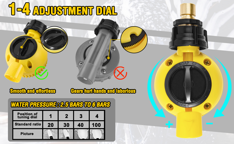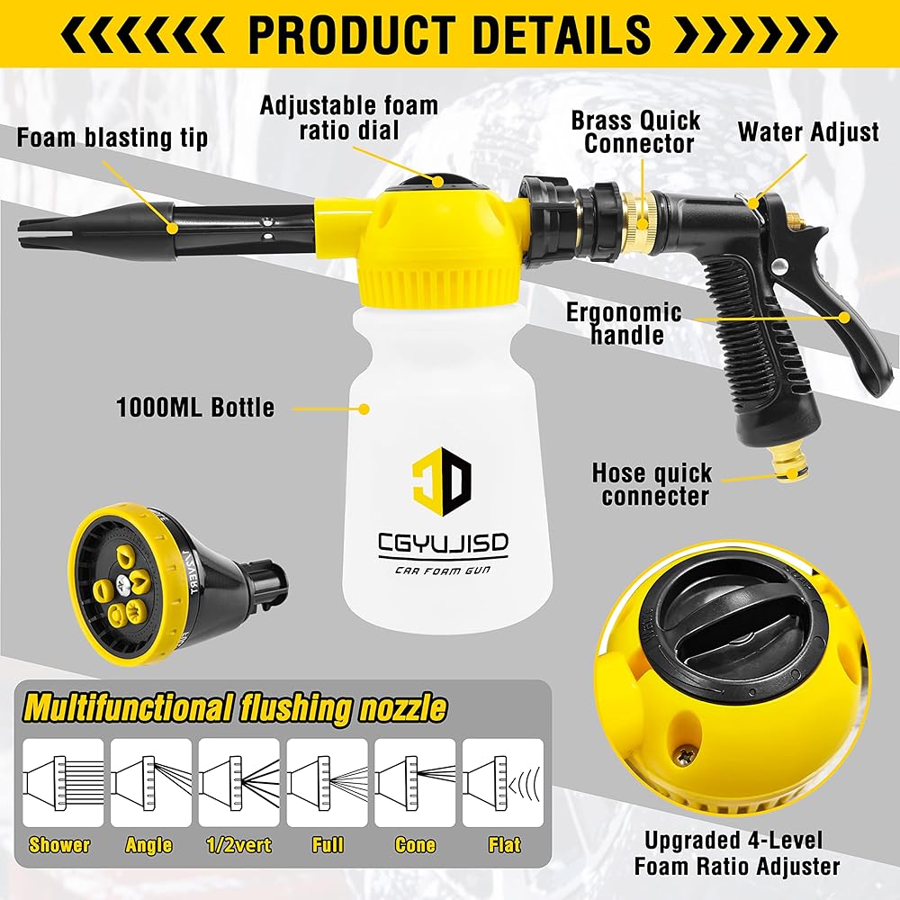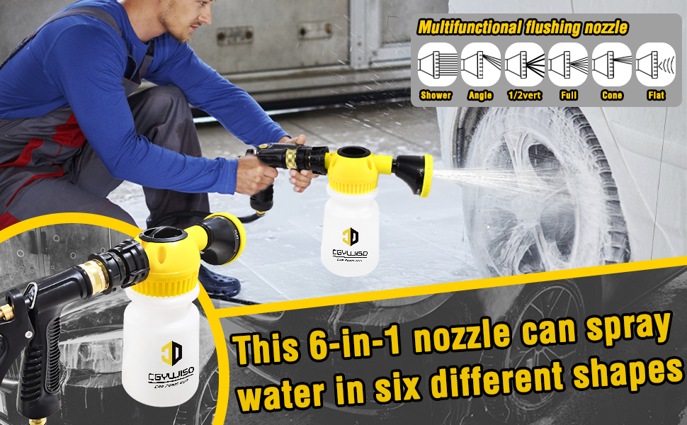 【مسدس إسفنجي للسيارة مطور】: بنادق الرغوة الخاصة بنا مصنوعة من النحاس عالي الجودة ومادة أكريلونتريل بوتادين ستايرين المقاومة للمواد الكيميائية لتدوم طويلاً. يتم توصيل الموصل السريع النحاسي المقاوم للتسرب بمعظم خراطيم الحديقة القياسية لاستخدامه كبخاخ للرغوة بنقرة واحدة فقط. يوجد قرص ذو 4 مواضع في الجزء العلوي من مسدس الرغوة لضبط تركيز الرغوة. تحتوي الفوهة 6 في 1 على ستة منافذ مياه بأشكال مختلفة لإنتاج أشكال مختلفة من تدفق المياه، ولها نطاق واسع من الاستخدام.