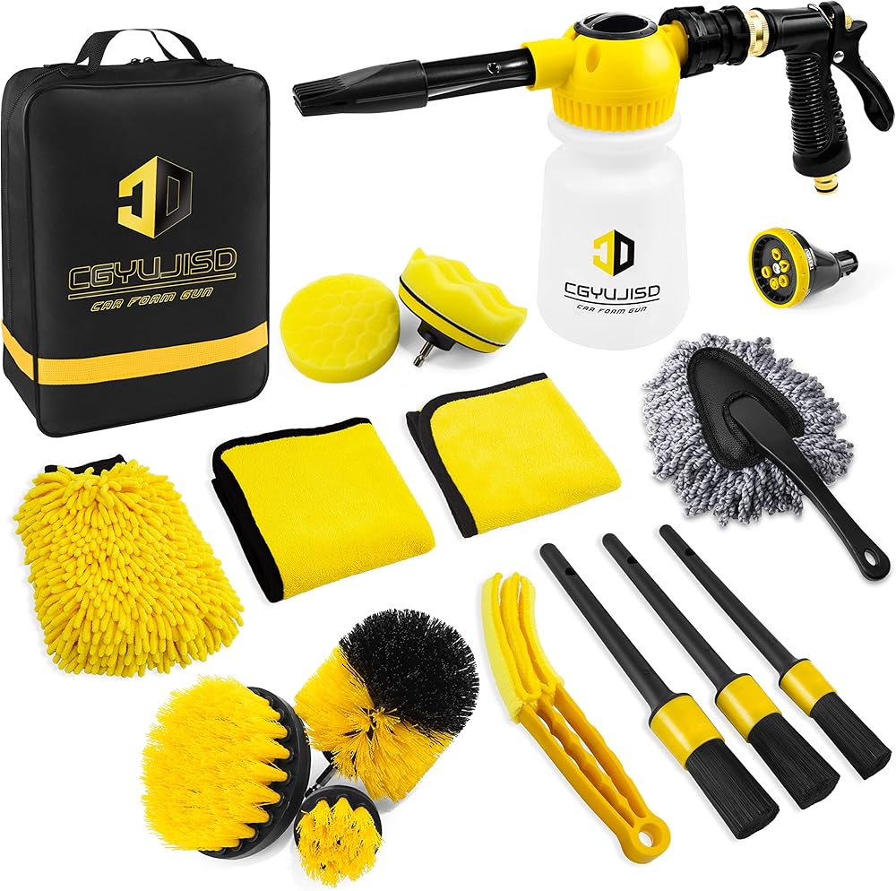 【مجموعة غسيل سيارات احترافية مكونة من 17 قطعة】تتضمن: مسدس رغوي لغسيل السيارات*1، فوهة 6 في 1*1، فرش مثقاب لتفصيل السيارة*3، فرش تفصيل السيارة*3، فرشاة تهوية للهواء*1، قفاز غسيل السيارة*1، غسيل السيارة منشفة*2، وسادات تلميع مثقاب السيارة*2، قرص تلميع ذاتي اللصق*1، منفضة غبار السيارة*1، حقيبة تخزين*1. مجموعة تنظيف شاملة للسيارة لتنظيف تفاصيل السيارة الداخلية والخارجية، مما يقلل من الوقت الذي تقضيه في البحث عن المصادر بشكل منفصل.