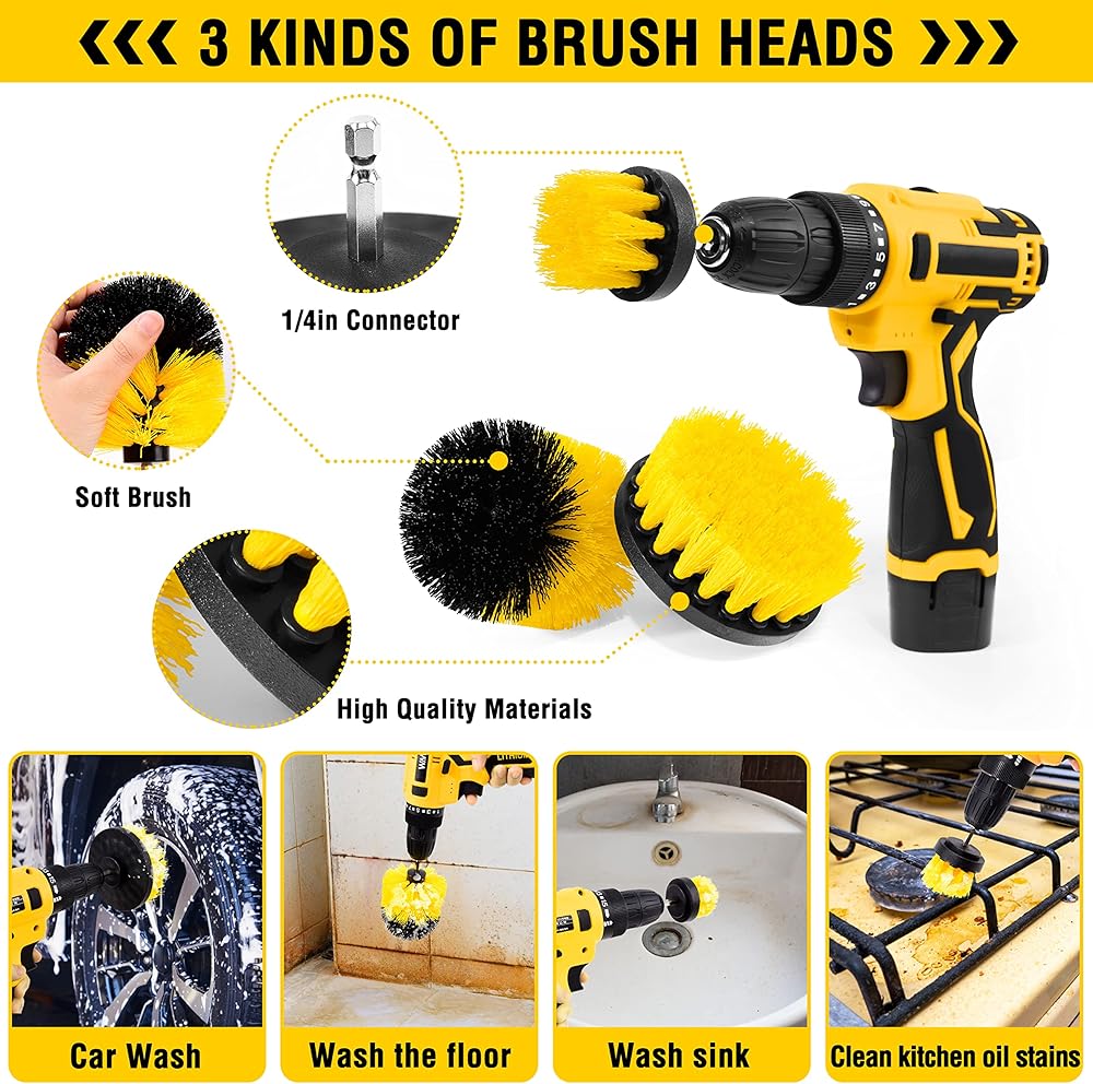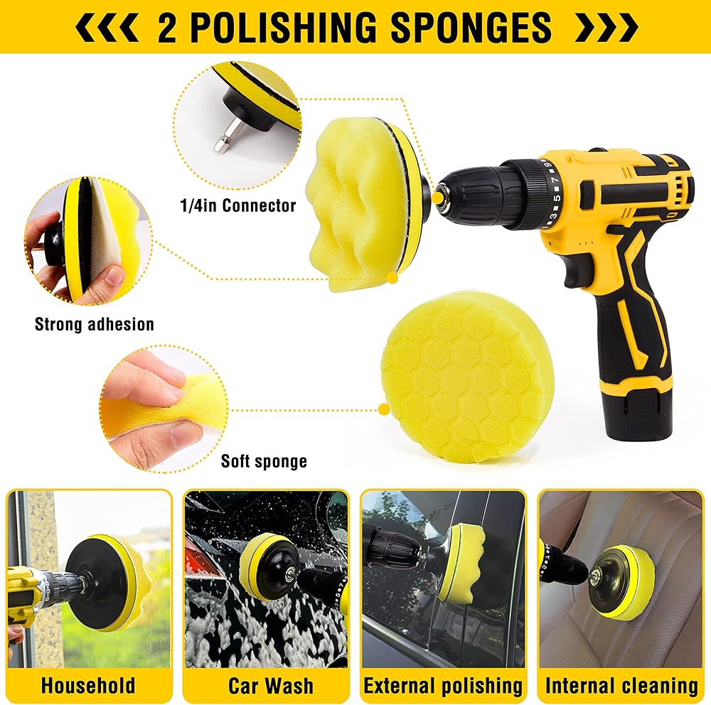 【مجموعة تنظيف السيارة الفعالة】: هل سئمت من تنظيف السيارة الممل؟ فرشاة المثقاب: أصبحت فرش التنظيف ووسادات التلميع الإسفنجية التي يتم تركيبها على أي مثقاب لاسلكي أو مفك الصدمات، أداة تنظيف قوية. احصل على مهام التنظيف العنيدة بشكل أسرع واحصل على طلاء، وبالتأكيد شريك جيد للتنظيف والتلميع. يمكن استخدامه أيضًا لتنظيف المطابخ والحمامات والقوارب وما إلى ذلك. (لا يتضمن المثقاب اللاسلكي)