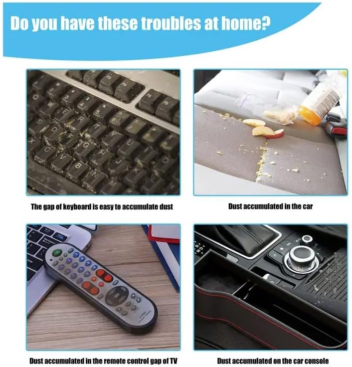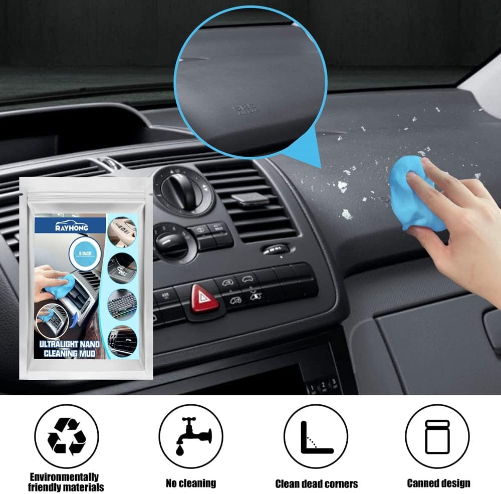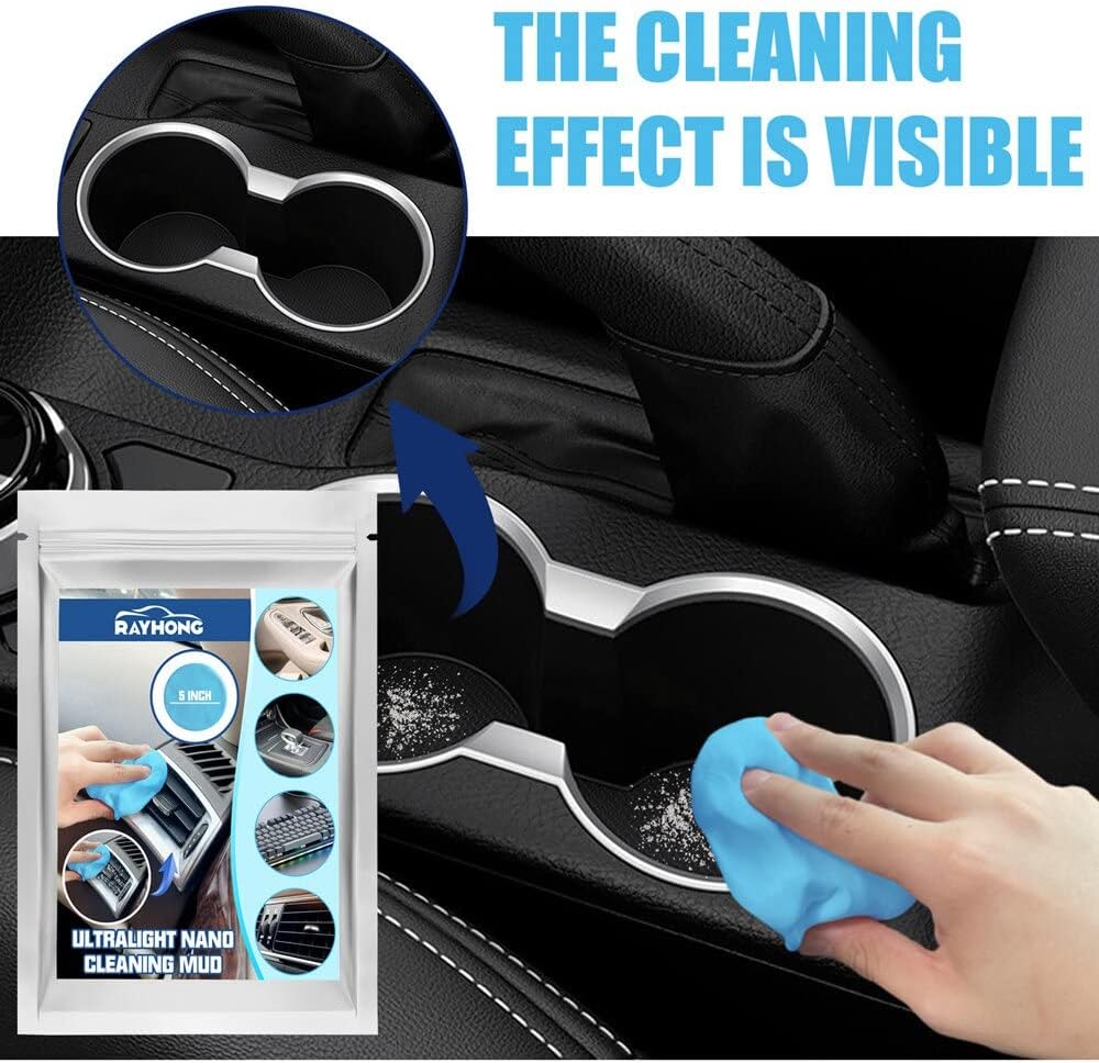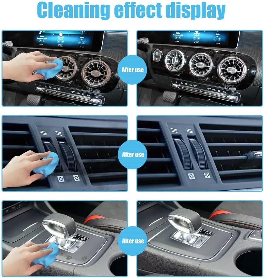 【Perfect Car Detail Kit】: The cleaning gel is designed to clean car air vents, steering wheel, console panel, storage compartment, cup holder, door handles, dashboard and other hard to reach spaces. 【Multiple Uses】Our car cleaning putty can be used not only for cleaning car interiors, but also in homes and offices, such as windowsills, printers, fan mesh covers, calculators, TV remotes and furniture. A suitable surface must be free of water on which car dust cleaners can stick. 【Reusable】: The cleaning gel can be used repeatedly until the color becomes dark and does not absorb dust. It is easy and convenient to store car cleaning supplies in the box after each use. (Note: Please do not wash the cleaning gel in water.) 【Easy to use】: Compared with ordinary car cleaning tools, this car cleaning gel is softer and easier to clean the dirt in the crevices of the car. First, rub with a small piece of gel before use, then slowly press the cleaning gel to a firm surface, such as a car's air vent, and slowly pull it out, the dust will be carried away by the gel. 【Eco-friendly】This keyboard cleaner is made of cleaning gel, which has a sweet smell and a light fragrance. This car cleaning kit collects dust easily.