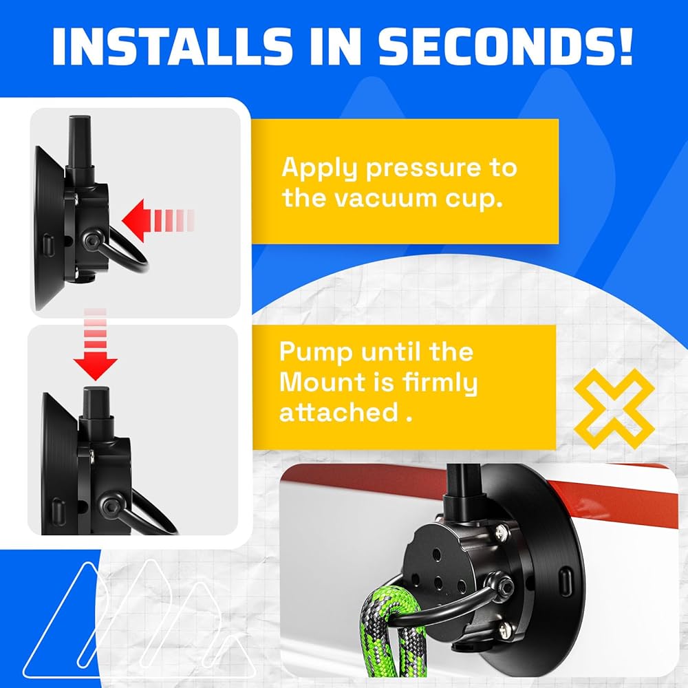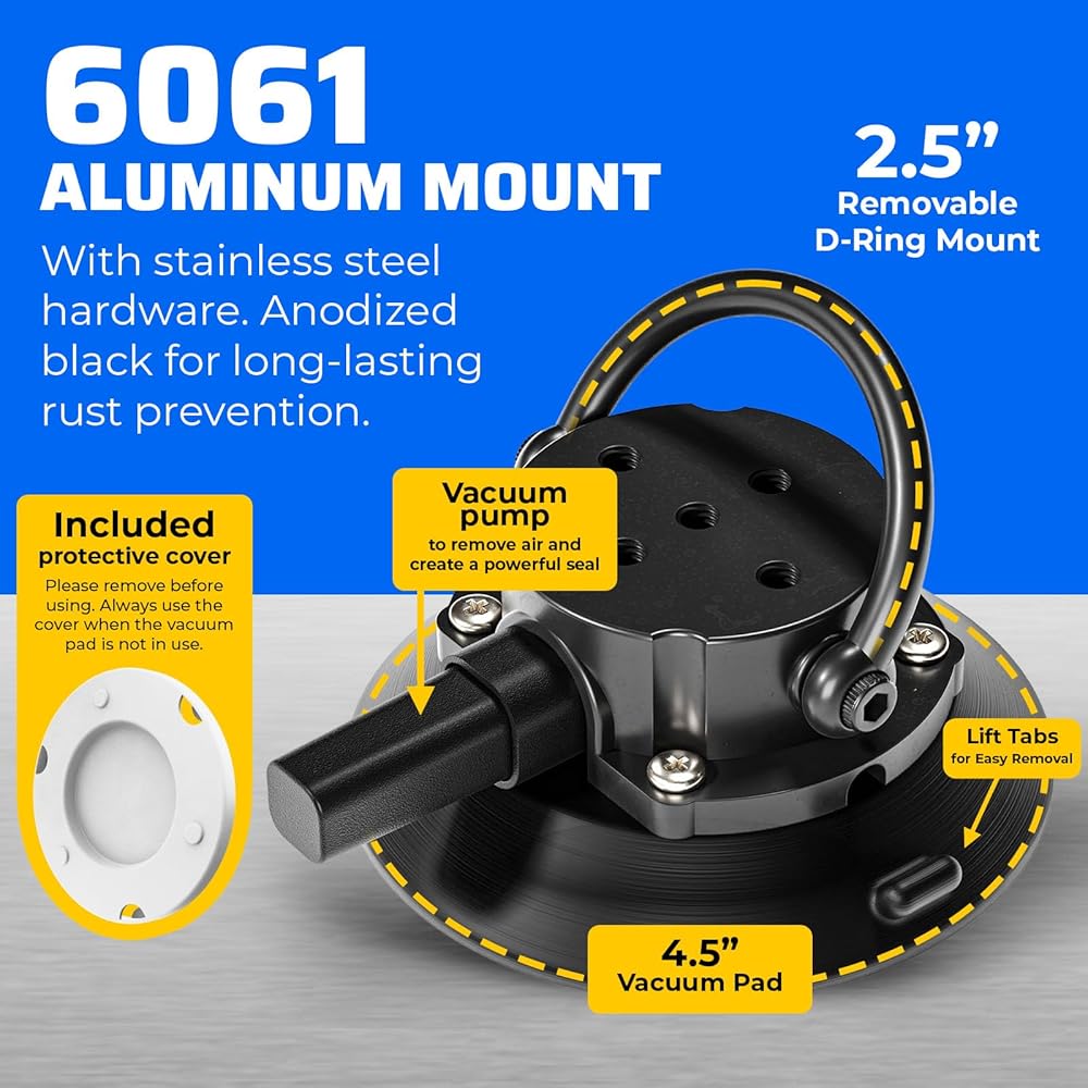 حامل مفرغ - ليس كوب شفط! توفر وسادة التفريغ مقاس 4.5 بوصة أقوى ثبات مؤقت في السوق. تعمل مضخة التفريغ المتضمنة على إزالة الهواء لإنشاء ختم لا مثيل له يمكنه تحمل ما يصل إلى 120 رطلاً من قوة السحب.