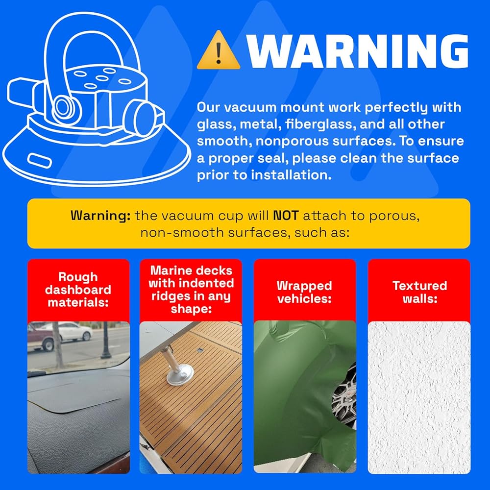 يمكن تركيبه على أي سطح أملس - يتم ربط موسع المكنسة الكهربائية بأي سطح أملس غير مسامي. يوفر الزجاج والمعادن والألياف الزجاجية وبعض المواد البلاستيكية وما إلى ذلك سطحًا مثاليًا للتركيب. لن يتم ربط وسادة المكنسة الكهربائية بالأسطح المسامية أو الخشنة أو ذات المسافة البادئة أو ذات النسيج. يرجى مراجعة صورة التحذير قبل الشراء.