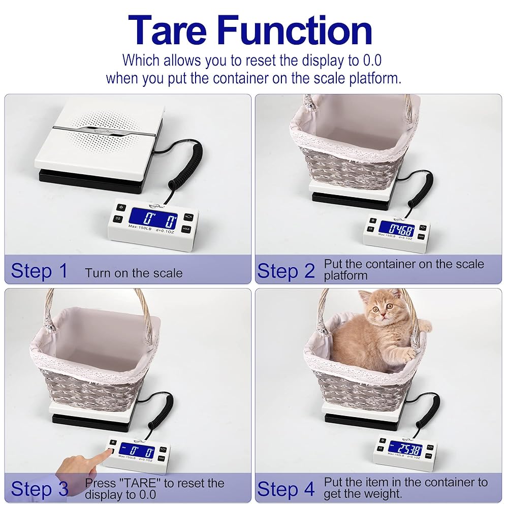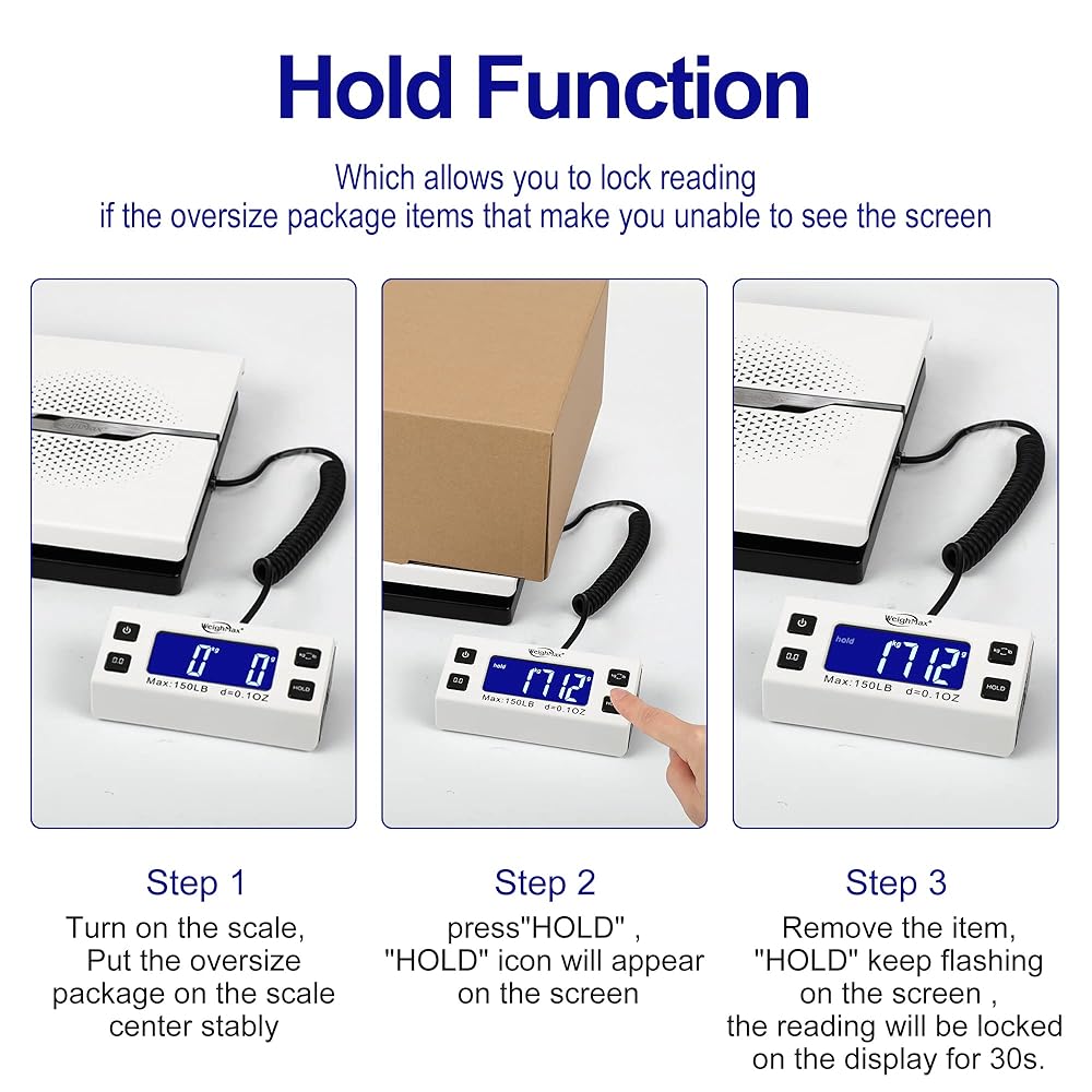 Convenient Tare/Hold Function and the shipping postal scale features are tare function which allows you to zero out the number for multi-packages purpose. Hold function allows you to lock the number after you take the package off the platform.