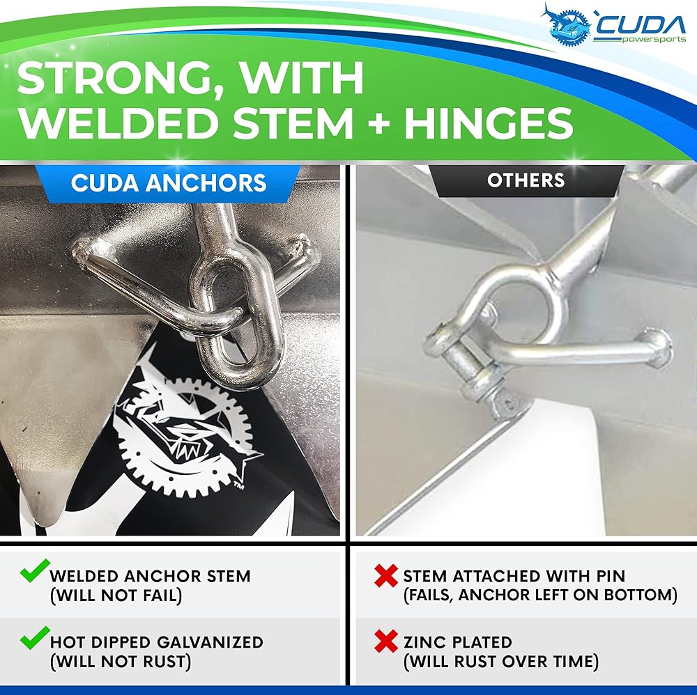 ضمان مدى الحياة - مرساة القارب شديدة التحمل تأتي مع ضمان مدى الحياة، قابلة للطي ويمكن تخزينها بعيدًا. أفضل مرساة للقارب العائم أو قارب التزلج. يتفوق على دانفورث أنكور فلوك أنكور فورتريس