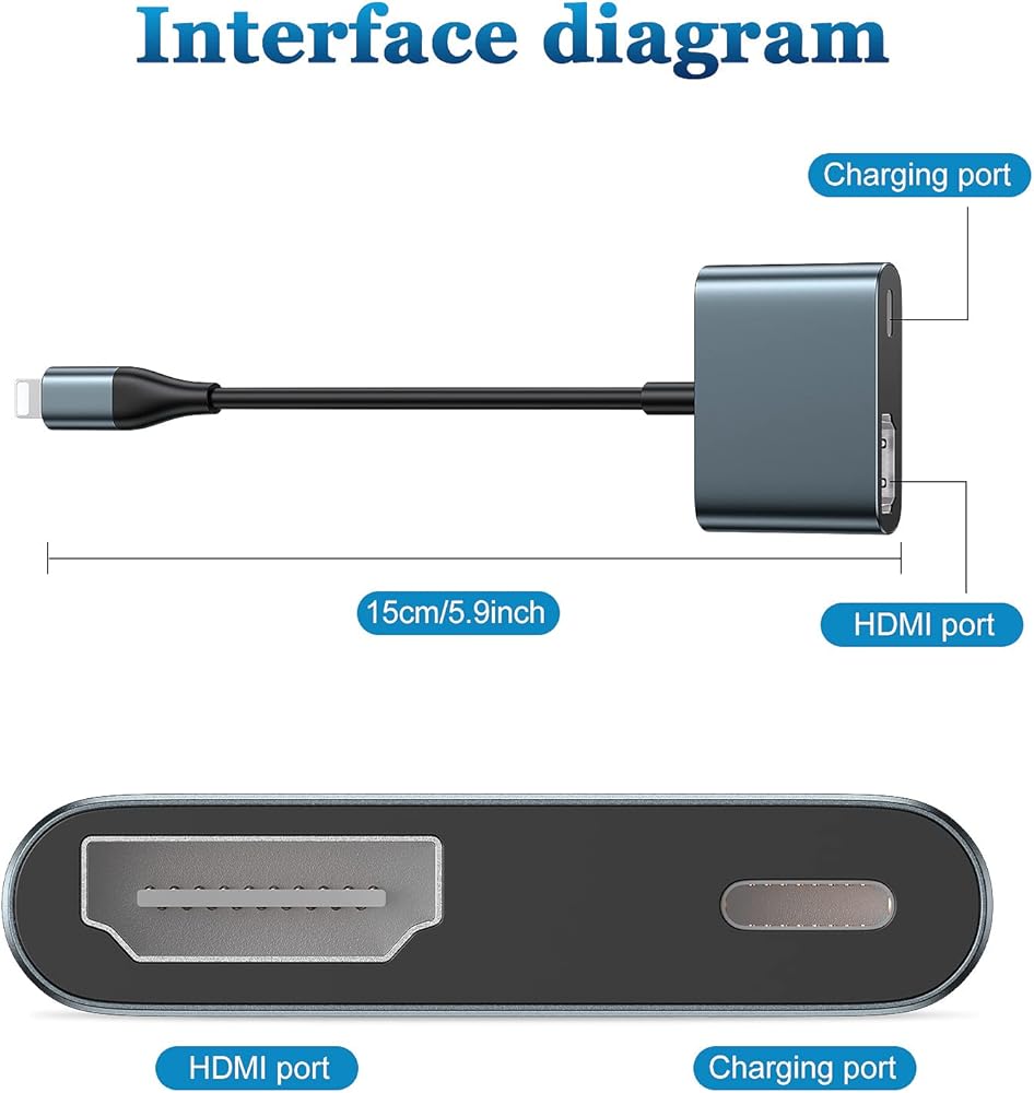 محول Lightning إلى HDMI رقمي AV 1080P HD فيديو HDMI وشاشة مزامنة وكابل موصل صوت مع منفذ شحن متوافق مع iPhone 14/ 13/ 12/iPad على HDTV/جهاز العرض/الشاشة، يدعم iOS17/16/15