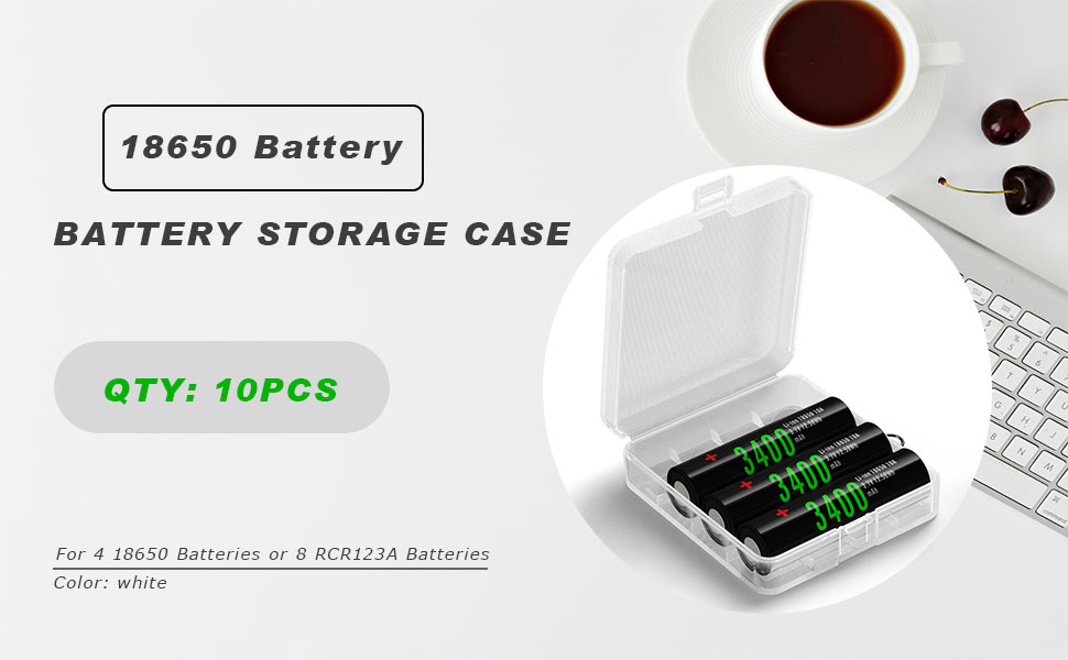 10 عبوات من علبة تخزين البطاريات البلاستيكية / صندوق / منظم / حامل لـ 4 بطاريات 18650 أو 8 بطاريات RCR123A - غلاف أبيض (4 فتحات - أبيض - 10 قطع)