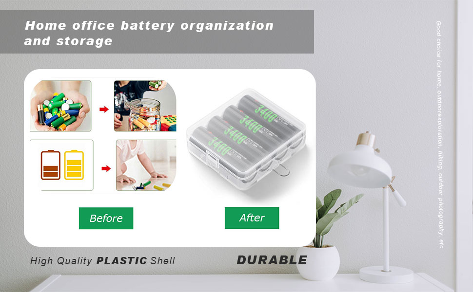 - تحافظ صناديق تخزين البطاريات هذه على ترتيب البطاريات وحمايتها، بدلاً من تخزينها بشكل غير محكم في سلة المهملات.