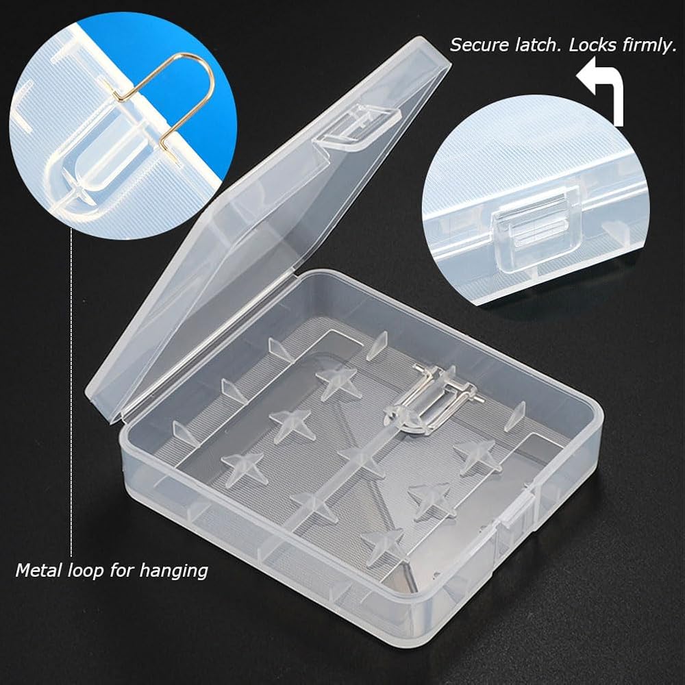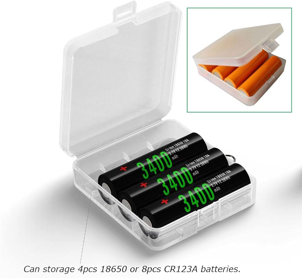 - حافظات تخزين رائعة لـ 4 قطع 18650 أو 8 قطع بطاريات CR123A. تحتوي على خطاف معدني للتعليق أيضًا.